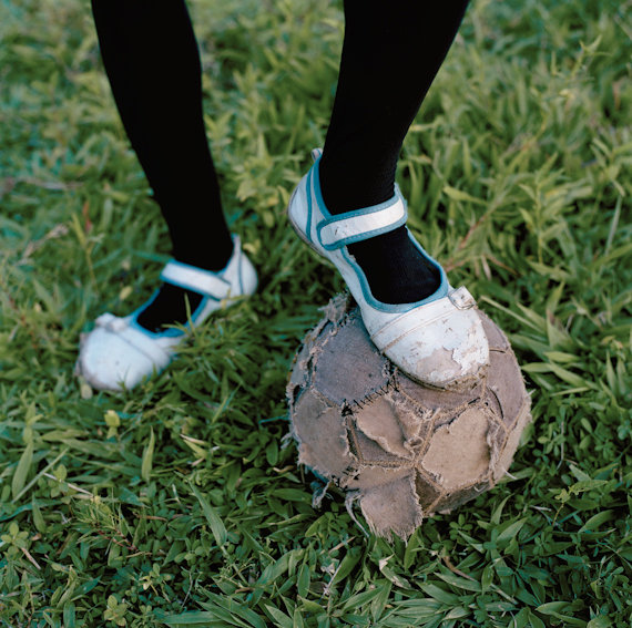 A bord d’une coccinelle, la photographe a parcouru plus de 25 000 kilomètres, de l’Afrique du Sud vers le Niger. Jessica Hilltout a réalisé des portraits d’une jeunesse happée par le football, ainsi que des photographies de lieux, de terrains, d’objets : des ballons, des chaussures et des buts de fortune. Des équipements fabriqués à partir de matériaux de récupération. Peu importe les moyens dont ils disposent, l’essentiel est de jouer et de vivre le football. Les ballons font l’objet d’une grande inventivité, sous l’œil d’Hilltout ils deviennent de véritables objets esthétiques. Chacun recèle une histoire, plusieurs vies. L’usure, les rafistolages et les matériaux font la valeur et l’unicité de ces balles.
