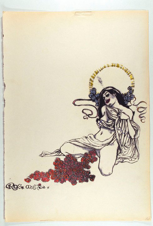 Son œuvre dessinée met en scène des créatures faisant écho non seulement à la mythologie antique, à l’art populaire, à l’iconographie religieuse mais aussi à l’art du XIXème siècle et à une riche mythologie personnelle. Cette dernière est construite à partir de l’histoire de la musique (de Debussy à Amii Stewart en passant par Blondie, Barbara, The Cramps etc..), de l’art et de sa propre expérience. Ses dessins traduisent un mélange pertinent entre académisme artistique et attitude (post) punk. Il se plaît à se penser comme étant le « Michel-Ange New Wave ». Les influences sont multiples, elles dialogues et fusionnent, instillant ainsi le caractère intemporel et original de son travail. Il nourrit son imaginaire en puisant dans l’art de la Renaissance et du XIXème siècle, ainsi que du dessin contemporain, de la bande dessinée et de la musique. De ce fait, Robert Crumb tutoie les gravures de Félicien Rops, ou encore Théodore Géricault avec Raymond Pettibon, les dessins de Michel-Ange avec ceux d’Ingres, Alfred Kubin avec les X Men. Les ponts se forment avec équilibre et audace.