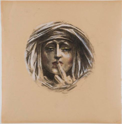Plus récemment, il a exposé à la Galerie Saint-Séverin à Paris, une œuvre surprenante intitulée Suzanne-Janet Préault (2011).[2] Il s’agit d’un portrait de Susan Janet Ballion (alias Siouxie Sioux) allié à la sculpture-médaillon d’Auguste Préault, Le Silence (1842-1843, Musée du Louvre, Paris). Verna a conservé le format médaillon, les drapés et la pose de la sculpture originale. Le doigt sur la bouche, Suzanne-Janet demande le silence. Le Silence est le fruit d’une commande pour la tombe de Jacob Roblès. Le visage féminin évoque donc le silence de la mort, le silence éternel. Sur un fond d’un noir intense, le visage de Suzanne-Janet apparaît comme une ombre, un fantôme. Elle semble surgir des ténèbres pour nous livrer un message macabre.