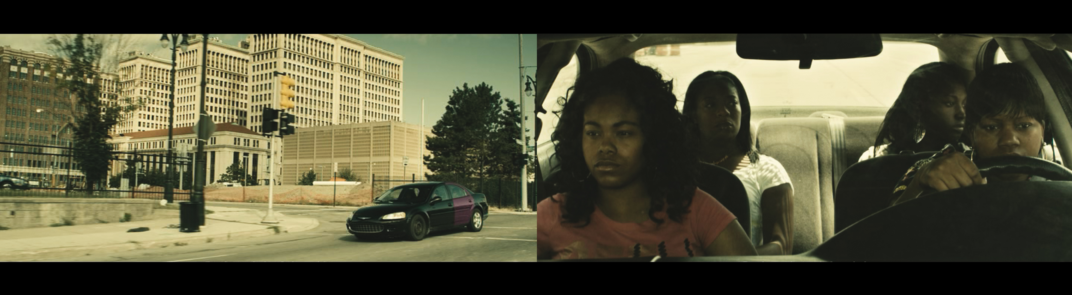 Sirens of Chrome (2010 – 12.38 min), quatre femmes noires dans une Chrysler noire avancent dans les rues de Détroit. La ville est quasiment déserte. Elles roulent en direction de l’ex-Michigan Theater bâti en 1926, là où Henry Ford a construit sa première automobile. Le lieu a été démoli en 1976 pour devenir un banal parking. Des femmes, une berline et un lieu chargé d’histoire industrielle et commerciale qui a transfiguré cette région des Etats-Unis. Une rencontre insolite créant un espace de réflexion sur la représentation et la place accordées aux femmes au sein d’une machinerie commerciale, où la femme est toujours présentée comme un appât réservé à une clientèle masculine. Jesper Just procède à une déconstruction des stéréotypes et renverse une imagerie commerciale qui formate nos esprits.