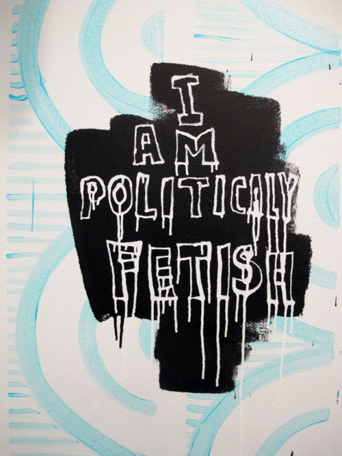 Pour son exposition parisienne, Eko Nugroho a choisi de déployer dans l’espace les différentes facettes de sa pratique. Le sol, les murs et le plafond sont littéralement contaminés par ses dessins directement peints sur les surfaces. Des dessins graphiques, rapidement exécutés, représentant des personnages hybrides, des motifs abstraits et des slogans glanés au fil de ses déambulations urbaines. I’m Politically Fetish – C’est Cool Have a Nice Corner. Des dessins dont le trait noir et épais, les couleurs vives et l’iconographie singulière, jouent un rôle moteur. Ils donnent le mouvement, le rythme et le ton de l’exposition. Ses dessins, sur fond blanc ou coloré, sont caractérisés par une fraîcheur enthousiasmante, une franchise déconcertante et une fausse innocence recelant un discours critique, précieux et optimiste. L’artiste s’inspire du street art, de la bande dessinée, des fanzines, des films d’animation, des spectacles de marionnettes, de l’art textile traditionnel indonésien, ainsi que des différents contacts humains et culturels qu’il provoque avec plaisir.[1] Les visages ne sont que partiellement visibles, ils ne dégagent aucune expression, aucun sentiment. Les personnages évoluent et flottent dans l’espace d’exposition, ils nous entourent. Des figures tentaculaires qui circulent dans un univers marin créé au moyen de vaguelettes bleues, parmi lesquelles surgissent des visages encapuchonnés, des corps augmentés d’éléments organiques et géométriques qui grouillent et semblent se multiplier autour des corps cloisonnés. Des figures chimériques influencées par le théâtre des ombres javanais (le wayang) qui consiste à projeter des silhouettes au travers d’un faisceau lumineux. Les marionnettes créées à partir de plaques de cuivre, sont totalement planes et articulées grâce à de fines tiges de bambou. Des figures en action, installées dans un système narratif. Ici, l’artiste nous conte son expérience parisienne, son approche de la ville, ses doutes, ses peurs, ses questions et ses critiques, à travers des personnages issus de son propre univers qu’il a mélangé avec les figures flottantes de Paris.