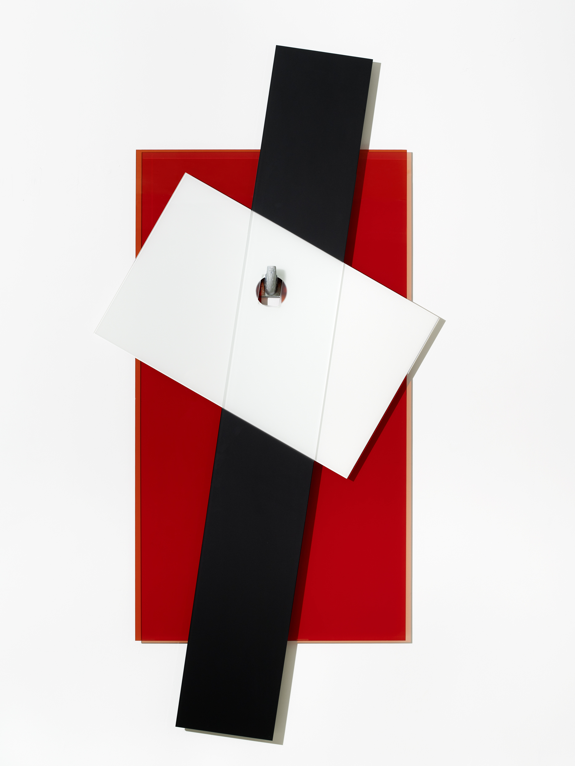 Patère II (11A18), 2011 212 x 105,5 cm x 9,5 cm/ 83 x 41 x 3 inches Peinture sur verre extra-blanc, plastique, acier, vis/ Painting and glass, plastic, steel, saw Courtesy Galerie Nathalie Obadia, Paris/ Bruxelles