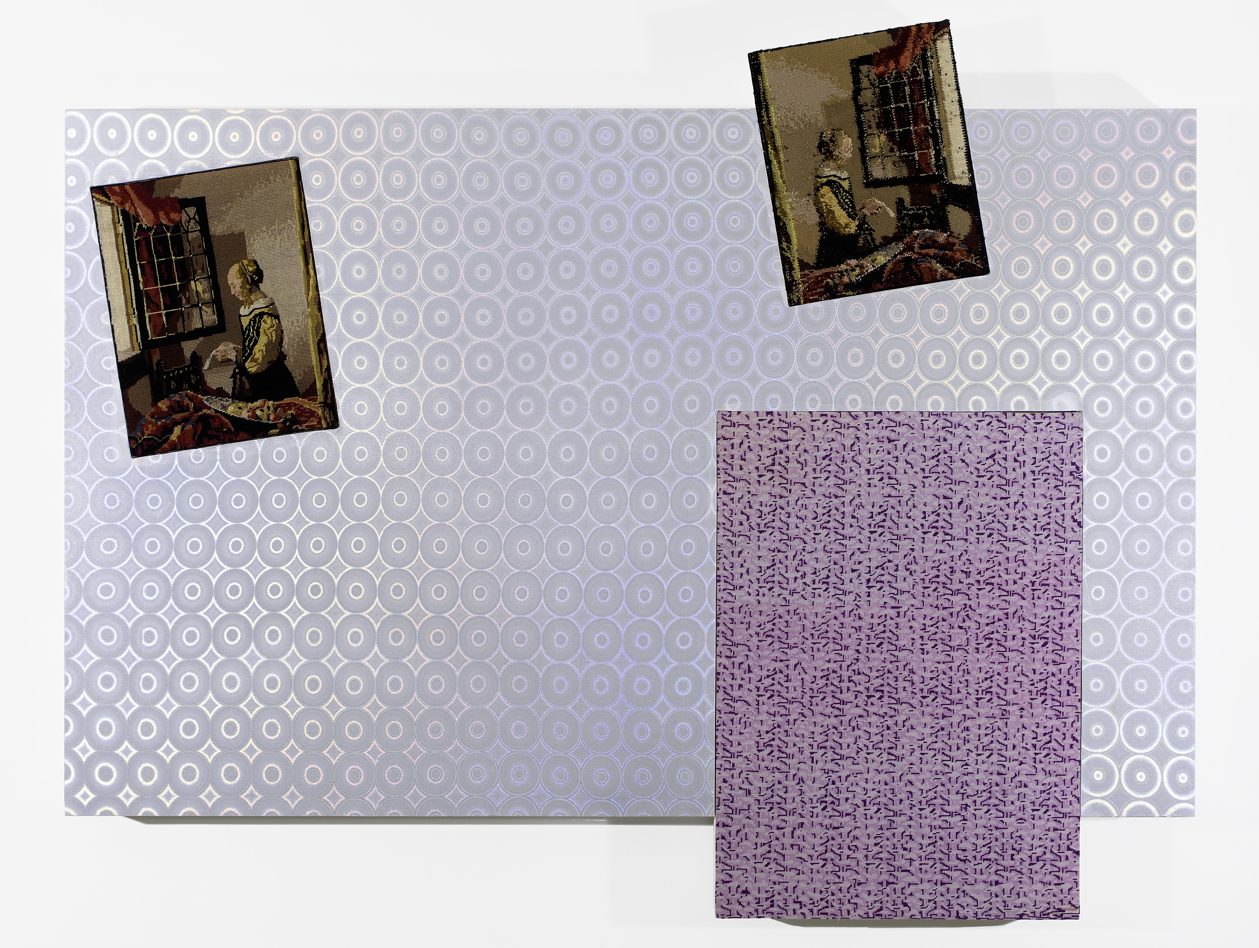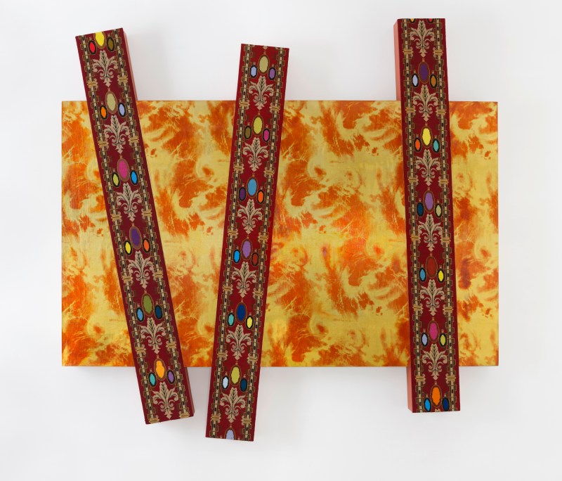 Sans titre (08A06), 2008 159 x 200 x 12 cm/ 62 x 78 x 4 inches Tissu décoratif sur bois, canevas, laine, peinture acrylique/ Decorative fabric on wood, canvas, wool, acrylic Courtesy Galerie Nathalie Obadia, Paris/ Bruxelles