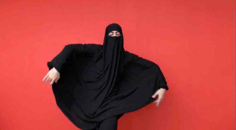 – Tes œuvres questionnent de multiples thématiques, dont celles du genre, féminin comme masculin. Dans Belly Dancer (2009), un homme vêtu d’une burqa effectue la danse du ventre, seul et en silence. La danse du ventre et la burqa sont habituellement attribuées aux femmes. Peux-tu me parler de ta relecture des codes de représentations sexuelles et comment tu œuvres à l’annulation des barrières du genre ?