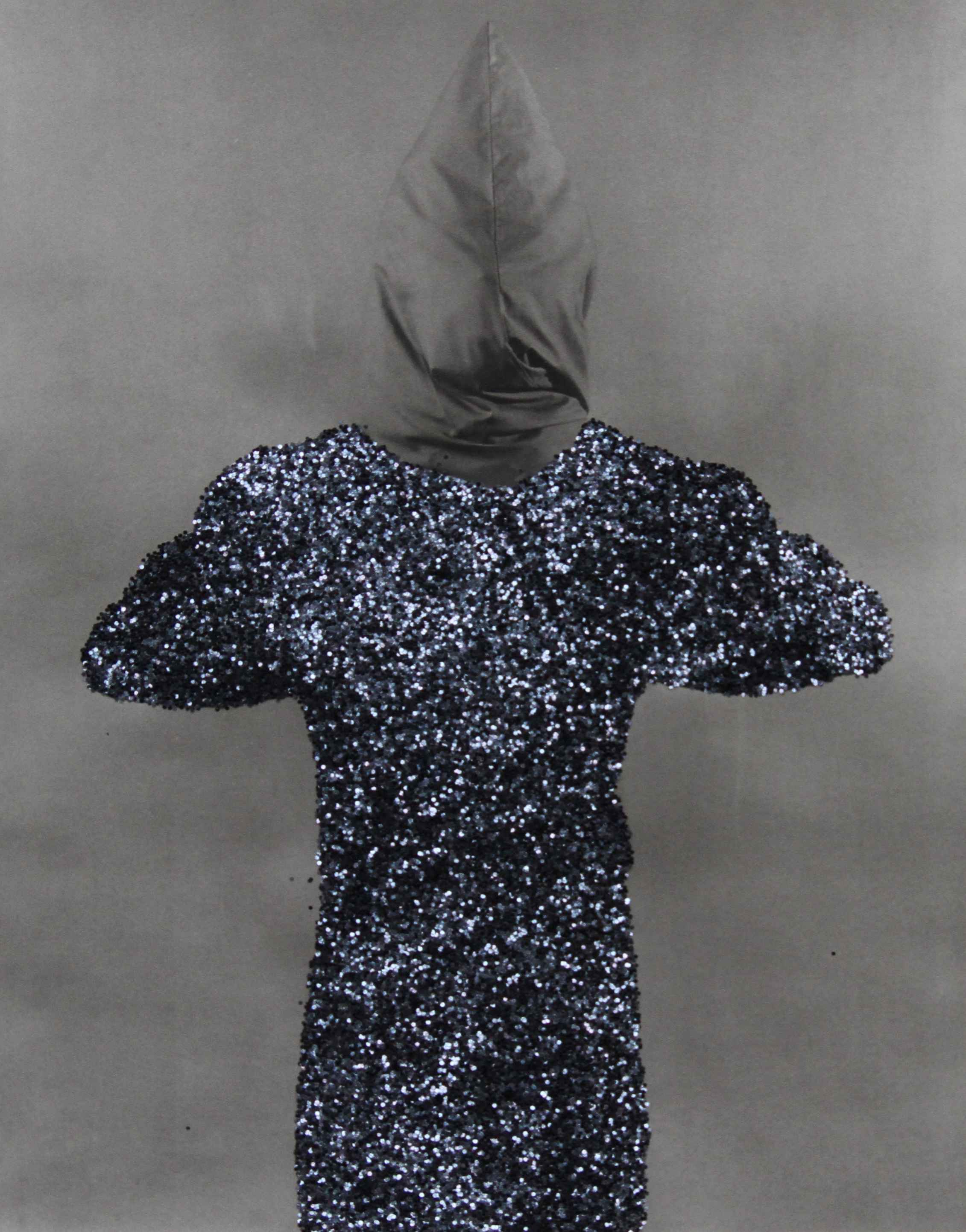 Le matériau est le lieu dans lequel la forme plastique apparaît, il s’agit pour moi de trouver pour chaque pièce que je crée la matière la plus adéquate. Souvent une rencontre avec un matériau chamboule tout, comme récemment avec la paillette qui me force à penser le sculptural dans sa dimension monstrueuse. J’aime me laisser prendre par ce moment magique de la rencontre avec une matière et voir où ça mène. Toute ma vie se base sur le principe de non savoir et de la flânerie en amour comme en art en politique ou en philosophie, ne pas savoir où je vais me réjouit. Mais le matériau qui m’intéresse avant tout c’est le corps. Ce corps je le sens vulnérable, fragile et fort en même temps. C’est lui qui découvre les informations qui nourrissent mon travail, celui de faire apparaître, au travers des formes que je travaille, les contenus politiques qu’elles véhiculent, comme des formes en soit, qu’il faut déconstruire par le processus de plasticité.