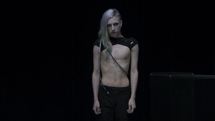 Extrait vidéo de l’installation vidéo C19H28O2 (agnès), 2011 Installation transdisciplinaire 6 Vidéos HD, pièce sonore, sculpture, testostérone de synthèse Production Le Fresnoy, Studio National des Arts Contemporains 2011. Courtesy Galerie Les Filles du Calvaire.