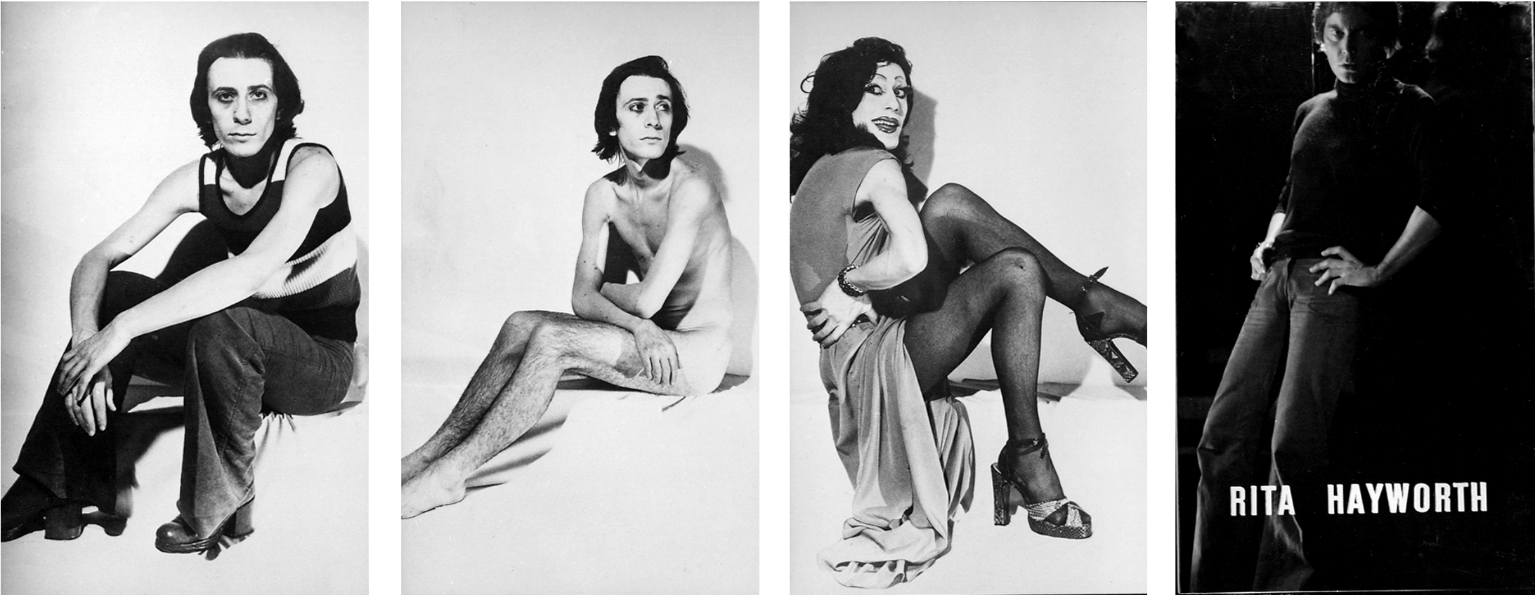 Michel Journiac Piège pour un travesti - Rita Hayworth 1972 Quadriptyque composé de 3 photographies N&B sur Formica contre-collées sur bois et d'un miroir avec texte en relief 120 x 75 cm (x4) Courtesy Galerie Patricia Dorfmann, Paris.
