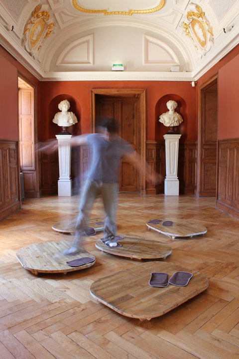 Régis Perray a les pieds sur terre. Sa pratique découle d’une association entre son attachement au monde du travail, particulièrement aux métiers en lien avec la modification des sols, et son approche sensible des chemins qu’il emprunte. En exote passionné et responsable, il traverse des lieux, où chaque fois le sol est mis en perspective avec son expérience d’un territoire délimité. Un sol pavé, bétonné, caillouteux, poussiéreux, carrelé ou recouvert de parquet. Chacun d’entre eux détermine l’empreinte du site qu’il va sonder. Dela Franceà l’Egypte, en passant parla Pologne,la République Démocratiquedu Congo oula Coréedu Sud, il arpente les sols comme les témoins d’une culture et d’une histoire auxquelles il souhaite se frotter au sens propre comme au figuré. Pour cela il s’impose un processus, un rythme, qui va lui permettre d’être, le temps d’un séjour, en harmonie avec le lieu choisi. Grâce à une gestuelle simple, répétée, il alterne entre efforts et temps de repos, pour vivre l’espace avec lequel il dialogue discrètement.