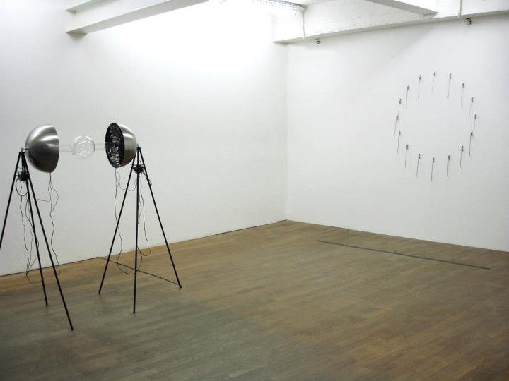 Attractio (2012) vient prolonger notre expérience des objets et des sons. De fines cordes colorées sont tendues entre deux murs dans l’espace de la galerie. Nous sommes invités à toucher les cordes qui, une fois mises en mouvement, projettent différents sons. Les fils de nylon multicolores deviennent un instrument, qui comme Syphonie pour orgue, d’adapte à l’espace, s’imprègne de ses contraintes et de ses possibilités acoustiques pour redéfinir l’ambiance sonore. En actionnant les cordes nous nous rendons rapidement compte que de l’autre côté du mur, des objets métalliques viennent frapper la paroi. Des aiguilles à brider se lever et s’abattent contre le mur au fil des compositions sonores aléatoires. Une activité qu’il nous est impossible de voir alors que nous jouant avec les fils. L’œuvre intègre une frustration visuelle, une curiosité et un trouble.