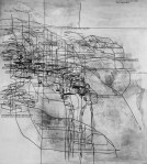 « Les dernières productions de Laurent Ajina marquent une nouvelle étape dans sa démarche artistique. Celle-ci était jusque-là uniquement identifiée par l’exécution des Site Specific Drawings sur les murs des différents lieux d’exposition qu’il est invité à investir de ses markers noirs. À même le plâtre, la peinture ou le béton, il étire des réseaux qui viennent composer l’espace. Il prolonge les lignes préexistantes et génère une véritable résille graphique concrétisant de manière temporaire une totale fusion entre l’artiste et le lieu. Les compositions rhizomiques traduisent une dynamique, une relation intense entre son corps et l’espace dans lequel il agit. Aujourd’hui, il déploie ses dessins au-delà des murs et formule une œuvre sérielle à travers laquelle il précise et développe sa relation à l’espace, à l’environnement, au bâti et à la mémoire. » … … …