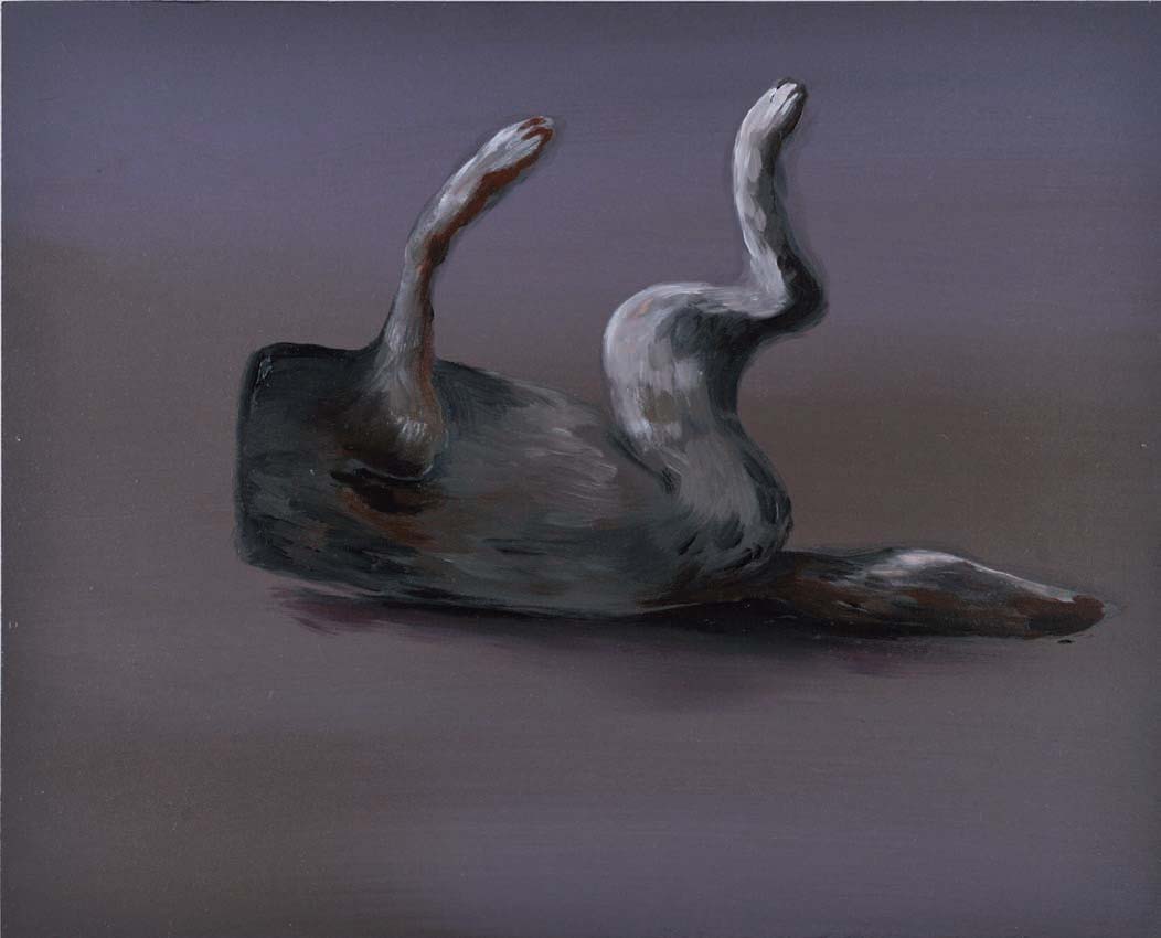 Françoise Pétrovitch est revenue vers la peinture. Délaissée au profit du dessin et de la céramique, la peinture s’est à nouveau imposée à elle pour donner une nouvelle dynamique à sa réflexion. À l’éphémérité de l’encre sur papier, elle revient aujourd’hui vers une stabilité de l’huile sur toile. Un choix technique d’abord lié à un plaisir du traitement de la matière, de la couleur et de la forme. L’artiste savoure la sensation de perdition, le sentiment d’une totale remise en question du dessin et de l’éloignement du sujet. Depuis trois ans, elle développe trois registres, les Nocturnes, les Colorées et les Gants, qui lui permettent d’explorer diffé- rentes lumières, tonalité et gestuelles. Les Colorées affirment une présence, les figures nous regardent. Les Nocturnes sont muettes, les êtres nous tournent le dos, leurs yeux sont clos ou bien dirigés vers le sol. Au rayonnement et à l’ouverture recherchés dans ses peintures aux accents plus acidulés, l’artiste favorise l’intériorité, l’énigme et le caractère insaisissable de ces corps recentrés sur eux-mêmes. Les Gants tendent vers l’abstraction, le sujet disparaît silencieusement. Les cadrages enserrés sur les mains tenant des paires de gants conduisent vers une perte des repères, du dessin. Une attention particulière est donnée aux gestes et aux enjeux de la peinture. Le fond et le sujet s’entremêlent doucement, ils se font paysages. Réel et irréel se tutoient. Les oeuvres génèrent une ambiguïté, un trouble. Les grilles de lectures oscillent entre bienveillance et cruauté, politesse et transgression, naïveté et souffrance, lumière et obscurité. Les figures ne sont pas bavardes, ici la narration est à peine amorcée, rien de plus. La solitude, la violence, le doute ne sont pas immédiats, les apparences sont trompeuses. Des indices chromatiques et symboliques nous amènent vers des territoires complexes et souvent emprunts d’un malaise. Des mains raidies, des larmes aux yeux, un regard fuyant, une tête penchée. Un malaise est installé. Les figures semblent livrées à elles-mêmes, elles sont comme suspendues dans un espace flottant, indéfini. Elles s’accrochent à des objets ou à des petits animaux mi-morts, mi-vivants. Une fillette serre le cou d’un corbeau, une autre s’agrippe à un faon sanguinolent, un garçon nous présente un poussin irradiant, des mains nous présente un oiseau mort. L’enfance est un prétexte pour nous parler des failles humaines que Françoise Pétrovitch sonde sans relâche non pas pour y apporter des réponses, mais plutôt pour leur donner une chair, une réalité (é)mouvante.