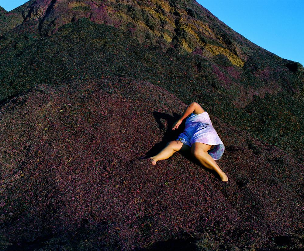 Allongée nue sur le sol, le corps de l’artiste est rendu vulnérable, en proie aux attaques extérieures. Il est recouvert de trois poudres colorées, proches des pigments, la matière première du peintre. Pourtant, il s’agit ici d’épices : le rouge vif du paprika, le jaune éclatant du curcuma et le brun du clou de girofle. Trois couleurs qui font non seulement échos aux trois catégories établies par l’Apartheid (Les Noirs, les Blancs et les Métis), mais aussi à l’histoire coloniale de Cape Town, la ville natale de l’artiste. Les Européens ont dès le XVe siècle construit la ville de manière à ce qu’elle devienne un point stratégique de la voie commerciale entre l’Europe et l’Asie. Une voie maritime grâce à laquelle les colons se sont enrichis avec, entre autres, le commerce des épices, au détriment des populations indigènes (les Khoisans) victimes de massacres et d’exploitations. Le projet vidéo et photographiqueColour Me (1998-2000) apparaît comme une synthèse des préoccupations d’une artiste profondément engagée.