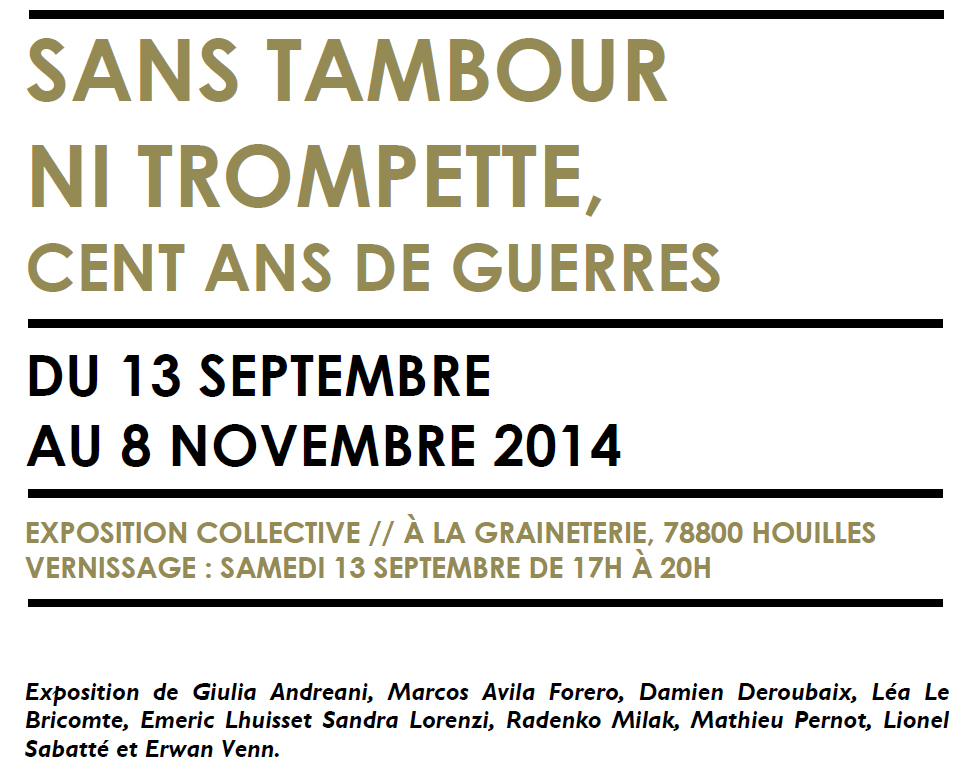 Publié 12 juillet 2014 à 980 × 770 in EXPOSITION [Commissariat] /// Sans tambour ni trompette – Cent Ans de Guerres /// La Graineterie [Houilles]. Poster un commentaire ou un rétrolien.