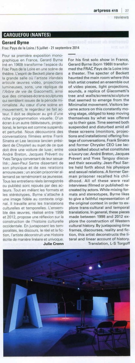 Publié 21 octobre 2014 à 603 × 1622 in COMPTE RENDU EXPOSITION /// GERARD BYRNE – FRAC Pays de la Loire /// ARTPRESS #415. Poster un commentaire ou un rétrolien.
