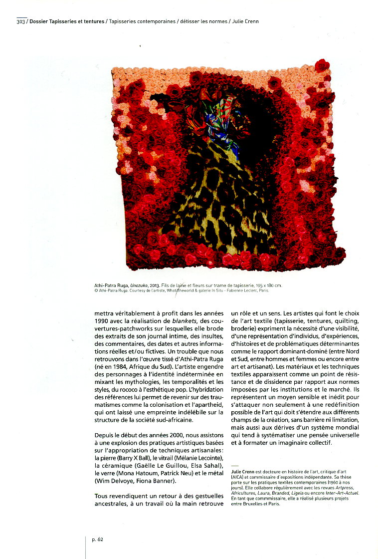 Publié 4 janvier 2020 à 758 × 1120 in TAPISSERIES CONTEMPORAINES – Détisser les normes /// Revue 303. Les rétroliens sont fermés, mais vous pouvez poster un commentaire