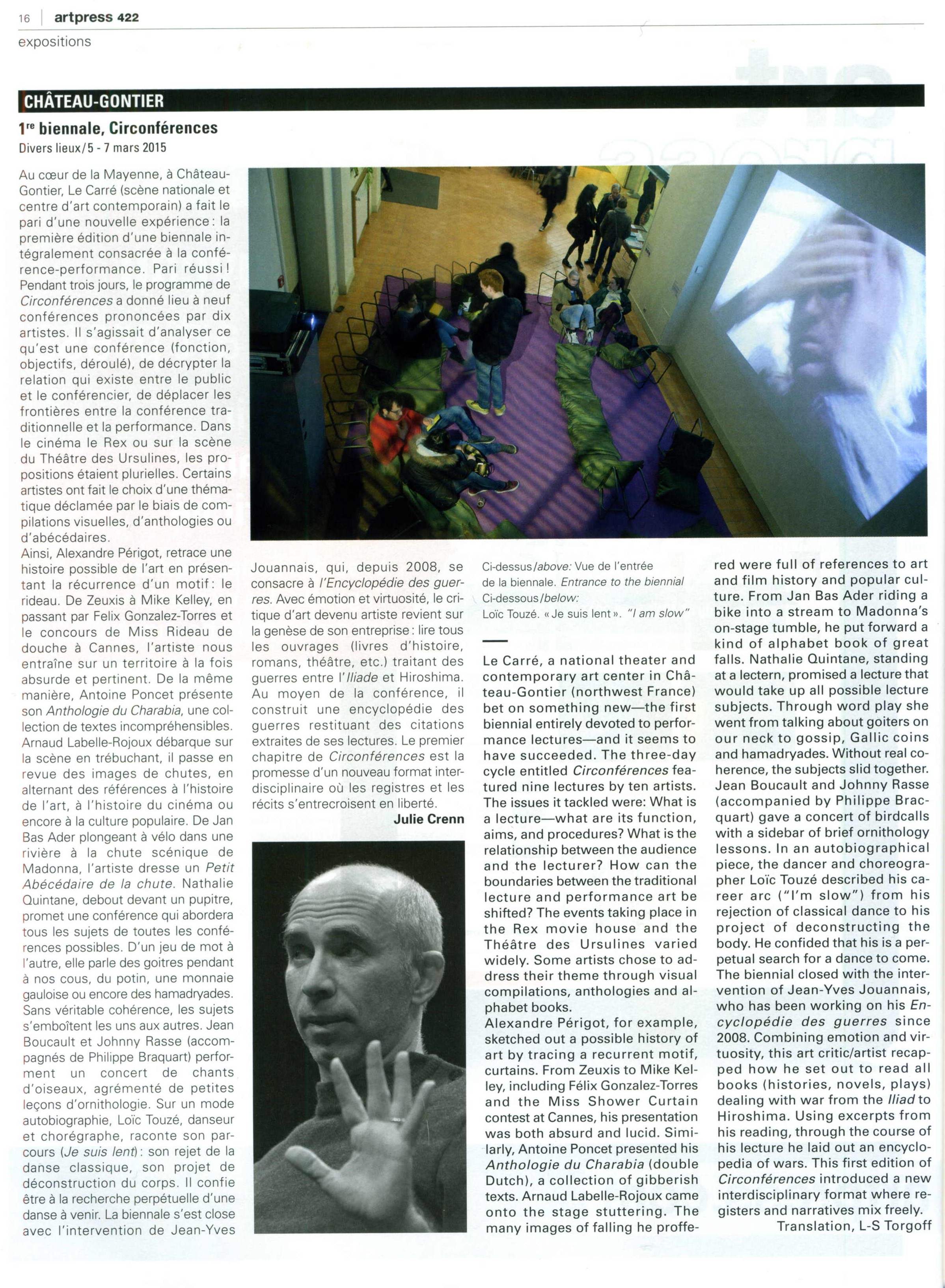 Première édition de la biennale, du 5 au 7 mars 2015 – La Carré – Château-Gontier