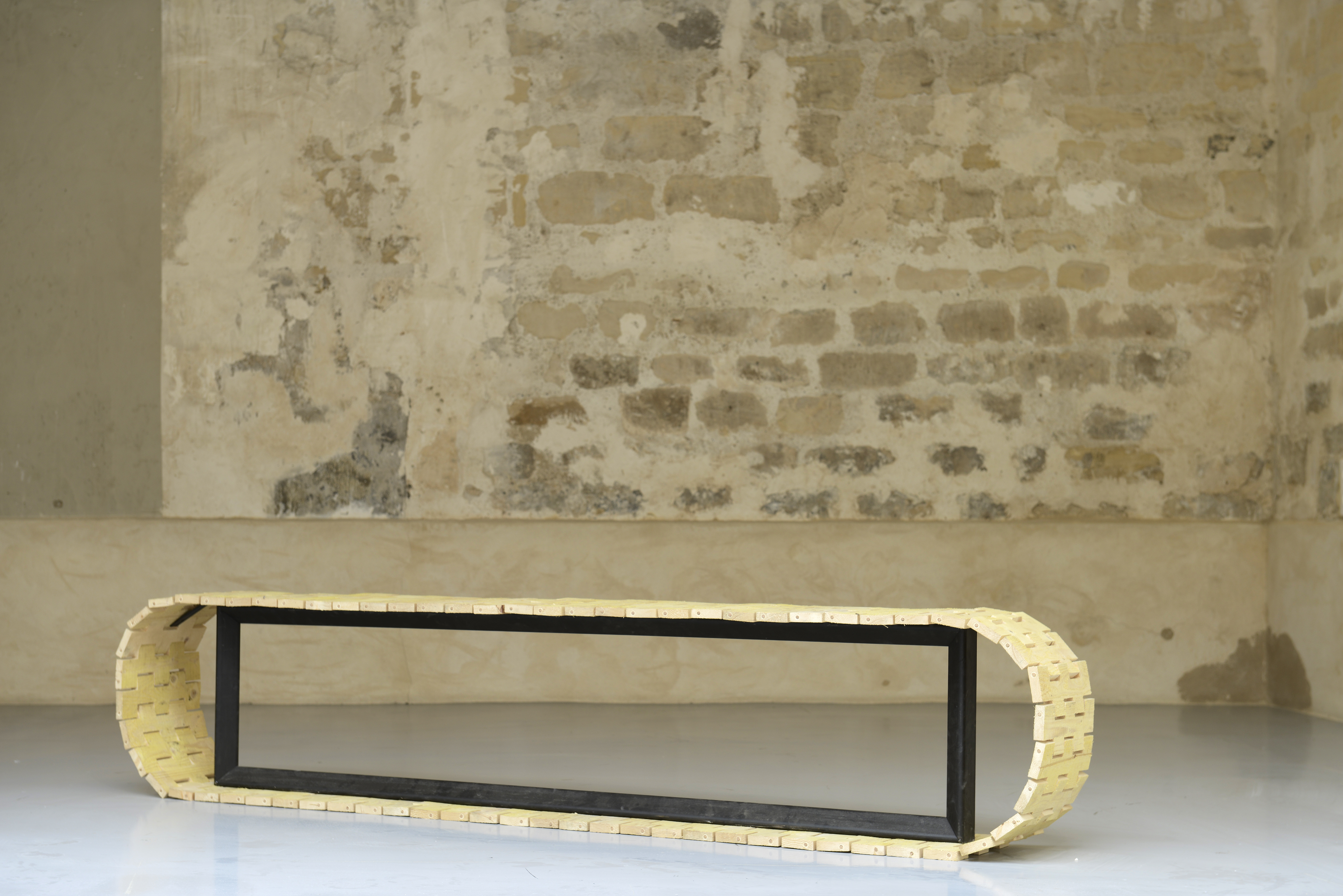 Chenille, 2014, sapin et acier (coproduction La Graineterie)