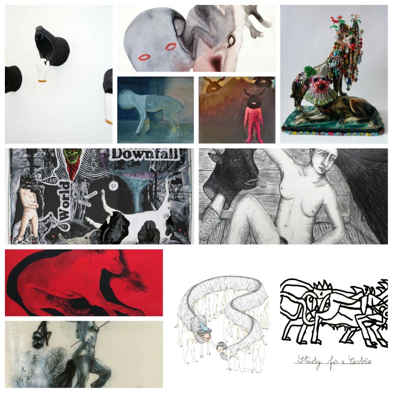 La symbolique de la figure animale traverse l’histoire de l’art, des parois des cavernes jusqu’aux sculptures de Damien Hirst, en passant par les peintures de Rubens, les dessins de Kiki Smith ou les photographies de Paola Pivi. La peinture de Frida Kahlo représente le point de départ d’une réflexion sur la relation complexe qui lie l’humain et l’animal. Quelle est notre part animale ? Dogs from hell envisage la figure animale de différents points de vue mythologique, métaphorique, politique, physique et spirituel. Elle engendre des peurs, des fantasmes, des troubles ou encore des visions. Le XXIe siècle entretient une relation distancée avec l’animal, cet être étranger, qui est le plus souvent compris comme une proie, un danger ou une source alimentaire. À travers les œuvres des douze artistes invités, l’exposition nourrit différentes problématiques où la figure animale est centrale : l’enfance et le conte (Laura Bottereau & Marine Fiquet, Françoise Pétrovitch, Gretel Weyer), le monstre et ses mythes (Eric Corne, Myriam Mechita, Jean-Luc Verna, Vanessa Fanuele, Skall) et la dimension politique de la figure animale (Damien Deroubaix, Mohamed Ben Slama, Adrien Vermont). Par la personnification, la mutation et la mise en écho d’imaginaires, les artistes s’emparent des mythes fondateurs, de l’Histoire, du corps, du monstre, de l’autre et de soi pour traduire les vicissitudes de la nature humaine.