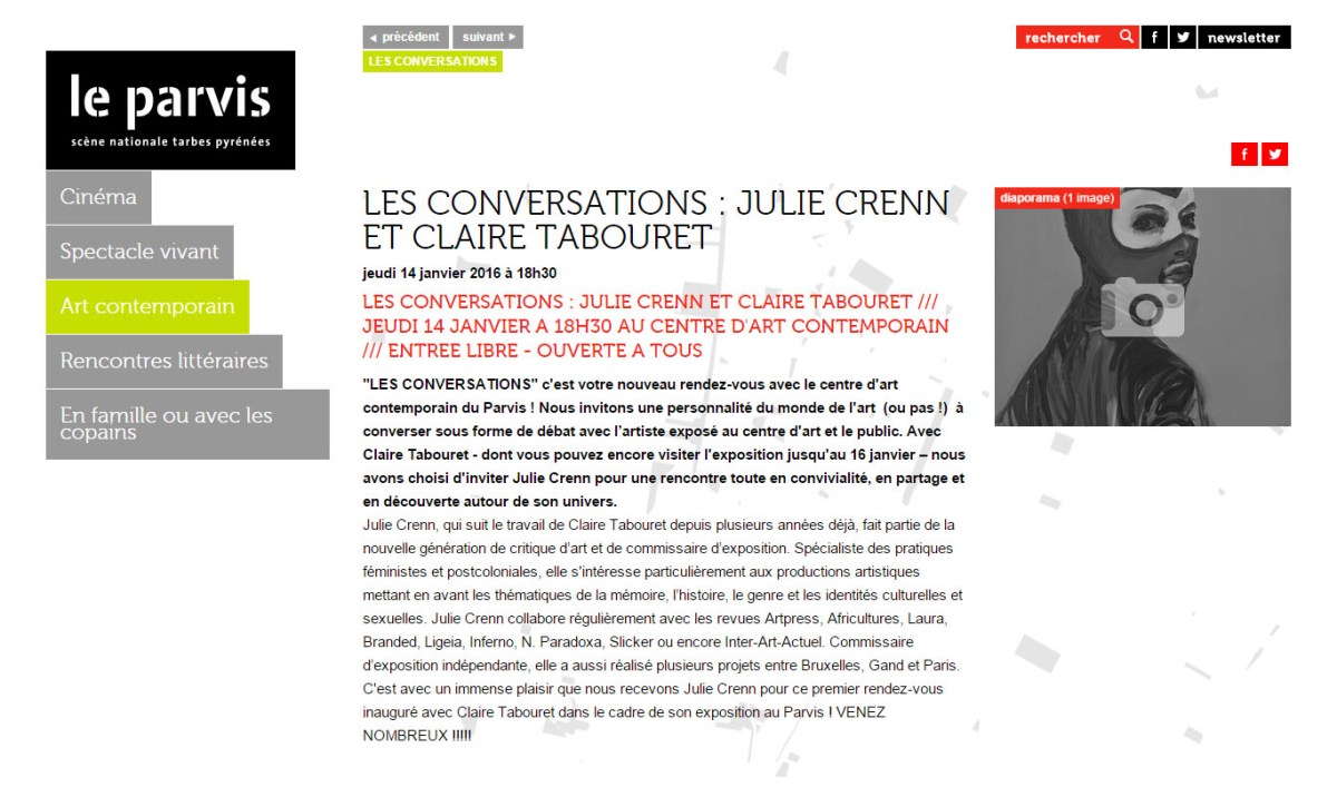 Publié 11 janvier 2016 à 1367 × 827 in CONVERSATION AVEC CLAIRE TABOURET /// Le Parvis – Tarbes. Les rétroliens sont fermés, mais vous pouvez poster un commentaire
