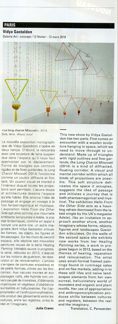 Publié 22 avril 2016 à 382 × 1050 in Compte rendu exposition /// Hello from the other side – Vidya Gastaldon /// Galerie ART-CONCEPT /// Artpress #432. Les rétroliens sont fermés, mais vous pouvez poster un commentaire