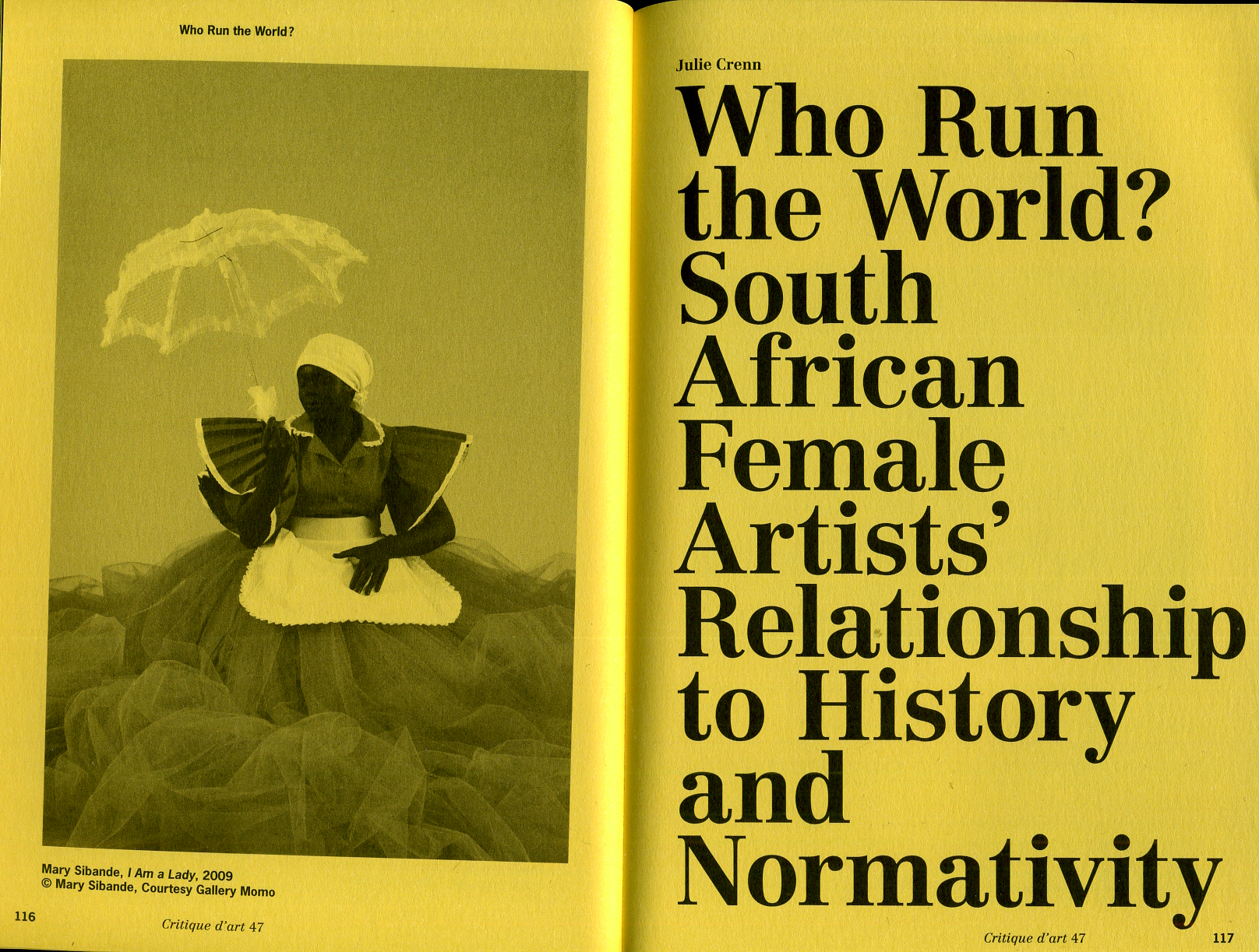 Publié 31 décembre 2016 à 1616 × 1223 in [ESSAI] Who run the world? – Les artistes sud-africaines au défi de l’Histoire et des normes /// Critique d’Art #47. Les rétroliens sont fermés, mais vous pouvez poster un commentaire
