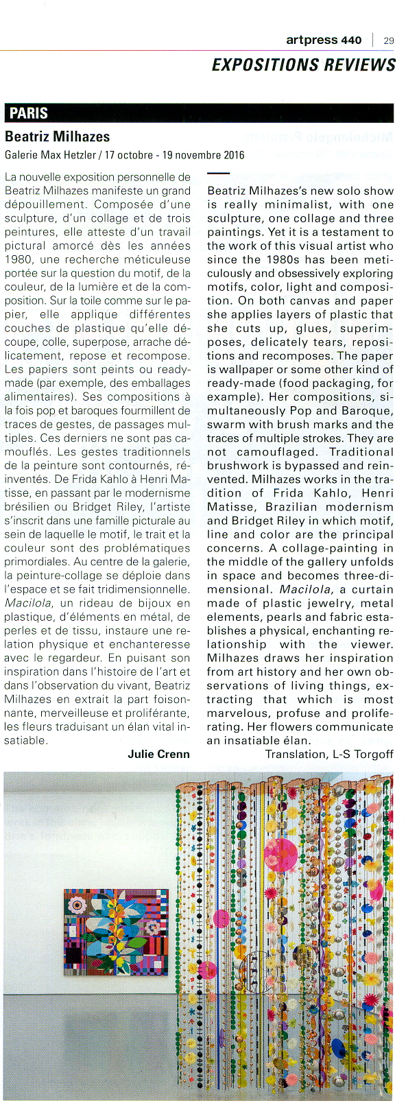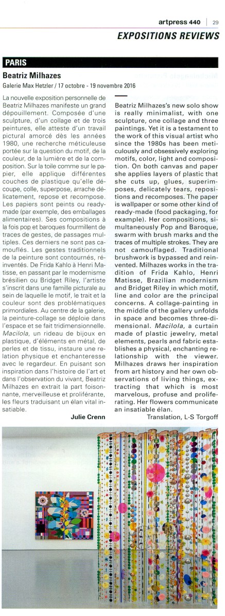 Publié 8 février 2017 à 592 × 1624 in [COMPTE RENDU EXPOSITION] BEATRIZ MILHAZES – Galerie Max Hetzler – Paris /// ARTPRESS #440. Les rétroliens sont fermés, mais vous pouvez poster un commentaire