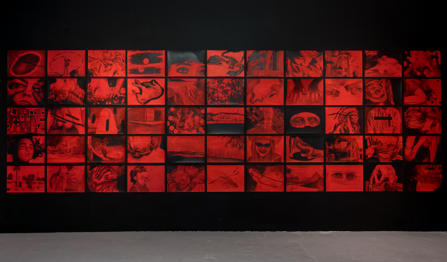 Myriam Mechita – Dessins – Serie « Tu vas comprendre » 2016/2017 – Vue de l’exposition The Drunken Boat – MAMA Gallery, Los Angeles 2017