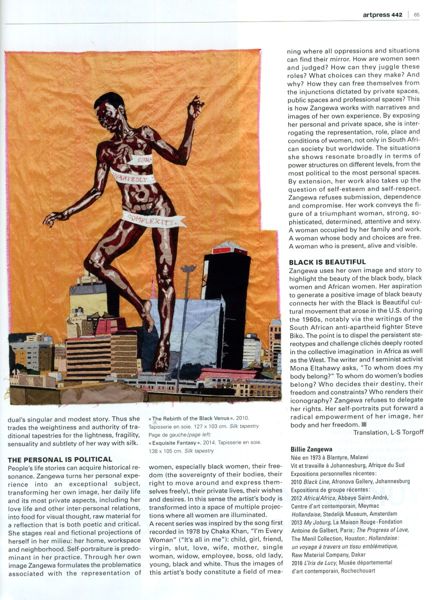 Publié 1 avril 2017 à 1216 × 1664 in INTRODUCING /// BILLIE ZANGEWA /// ARTPRESS #442. Les rétroliens sont fermés, mais vous pouvez poster un commentaire