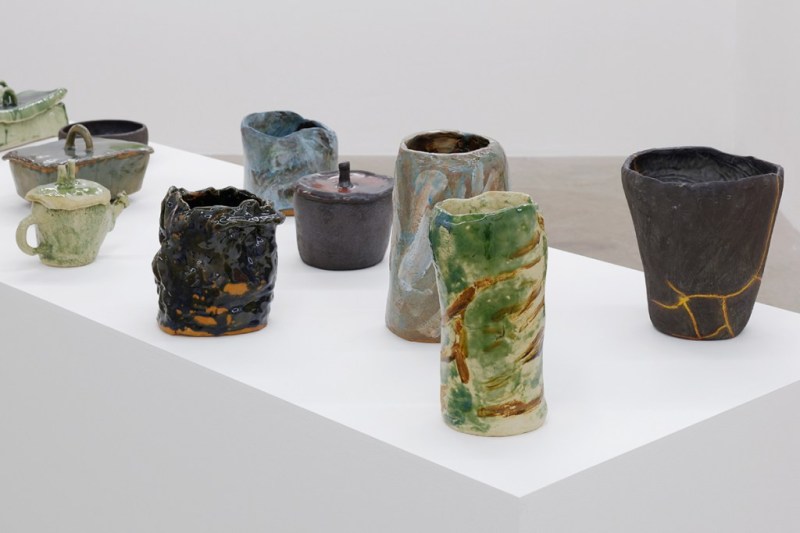 En 1979, Simone Fattal décide d’arrêter la peinture. Elle donne le dernier coup de pinceau à une peinture, Le Mont Sannine (1979). L’œuvre achève un travail d’observation assidu de la montagne qu’elle scrute au quotidien par sa fenêtre alors qu’elle vivait à Beyrouth. Le voisin imposant et puissant, partiellement recouvert de neige, devient peu à peu un motif dont l’artiste va décliner le dessin, les nuances lumineuses, les couleurs et les impressions. Peu à peu, les peintures aux couleurs vives et intenses laissent place à la blancheur. Le blanc enveloppe et envahit progressivement les compositions. Il s’impose comme la lumière de Beyrouth, une lumière blanche, éblouissante, quasi aveuglante. Alors, les dernières peintures sont baignées de cette lumière à la fois troublante et rassurante. Le Mont Sannine s’eface, il se fait réminiscence et ouvre un espace de projection infni. Un espace où la fguration et l’abstraction mènent un dialogue qui altère avec subtilité leurs frontières. La question des porosités est ainsi mise en œuvre. Les peintures des années 1970 installent une réfexion où le quotidien et la mémoire tiennent une place centrale. Les deux territoires de recherche sont essentiels dans l’œuvre de Simone Fattal dont les fondements engagent une relation ténue entre le passé (l’Histoire) et le présent. L’artiste est fascinée par l’archéologie : fouiller la terre pour remettre à jour les objets, les fragments abimés et les traces de civilisations passées. Il n’est donc pas étonnant qu’à son arrivée aux Etats-Unis, dans les années 1980, elle s’investisse pleinement dans une pratique de la céramique. Les mains dans la terre, elle façonne, sans aucune forme de maniérisme, des corps debout, des architectures résistantes. A ces œuvres bien connues, elle développe parallèlement la création d’objets assignés à l’espace domestique, au quotidien : des vases, des pots, des théières, des plats ou encore des tasses. Les gestes volontairement primaires dont les traces sont visibles sur les sculptures, sont ici afnés. Simone Fattal voue un immense respect à l’artisanat dont les enseignements sont transmis à travers le temps, les cultures et la géographie. Elle afectionne les gestes minutieux, les techniques précises, le savoir-faire et le travail des matériaux. Alors, la cohabitation des peintures sur toile et des pots en terre cuite formulent un télescopage entre le présent et l’archéologie, entre l’art et l’artisanat, entre l’existant et le souvenir de cette existence. Consciente d’un monde en dérive, d’une Histoire et d’une actualité nourries d’une brutalité incessante, Simone Fattal éprouve par la matière la fragilité, la résistance et la survivance de nos histoires.