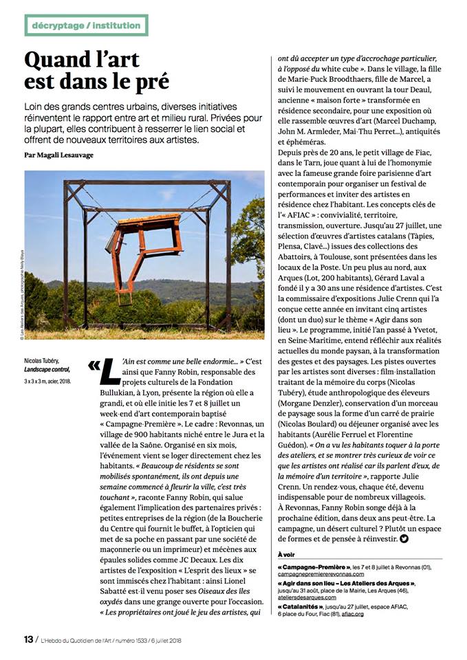 - Quotidien de l’Art – vendredi 6 juillet 2018 /