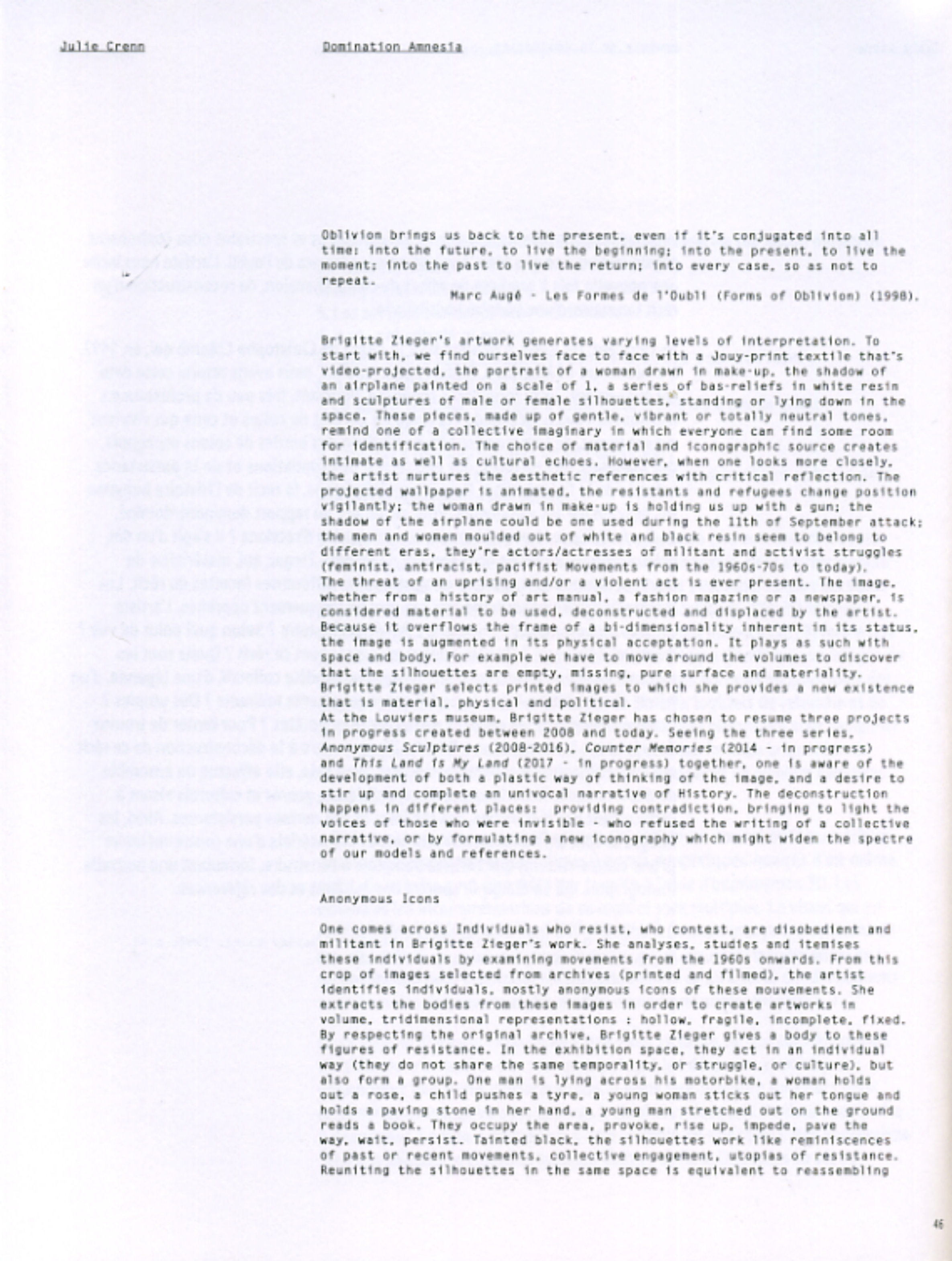 Publié 16 juillet 2018 à 2370 × 3137 in [CATALOGUE] « Amnésie de la domination » – BRIGITTE ZIEGER – Controverses /// Musée de Louviers [FR-ENG]. Les rétroliens sont fermés, mais vous pouvez poster un commentaire