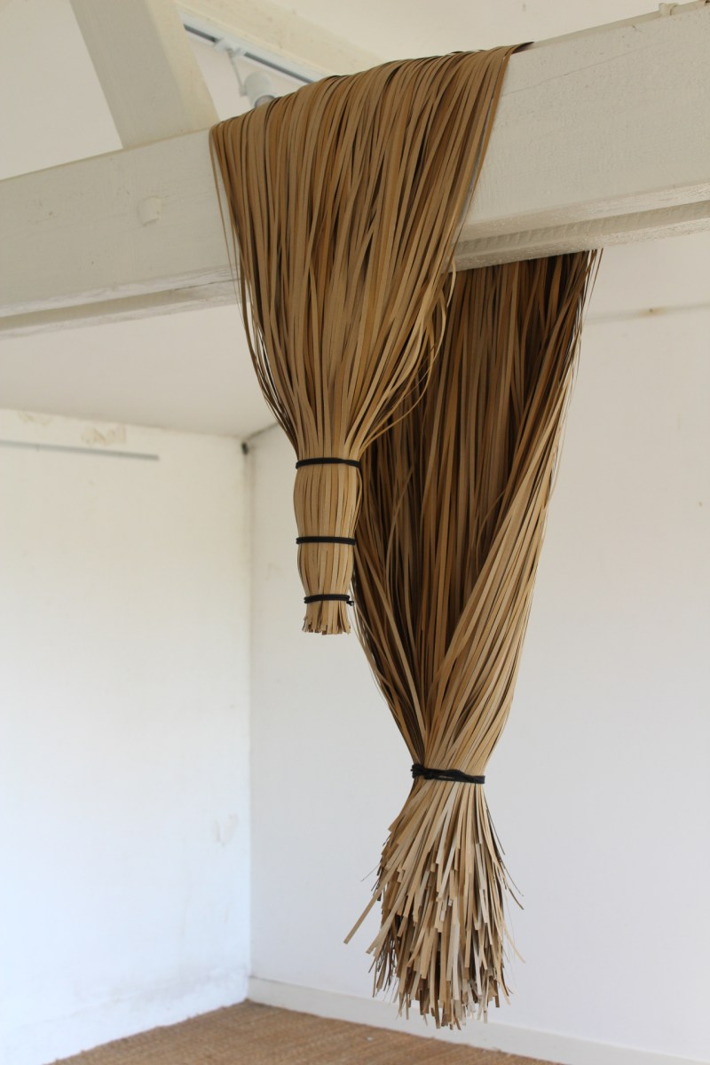 Les sculptures de Julie Maquet reposent sur la rencontre et l’observation d’un objet préexistant. Des objets utiles présents autant dans l’espace domestique que dans différents milieux professionnels. Nous retrouvons ainsi des œuvres réalisées à partir de clous rouillés, de caissettes à pâtisserie, de capsules de vin, d’élastiques en caoutchouc, de pinces à linge en bois, de pneus de vélo ou encore de paquets de cigarettes. Toujours fabriqués de manière massive et sérielle, ils renvoient à une forme standardisée et une fonction précise. L’artiste décide alors de confronter ces objets dont l’obsolescence est programmée à leur dimension sérielle en explorant l’accumulation, l’association, l’étirement. Elle rassemble des objets identiques pour créer une nouvelle entité. Chaque objet donne lieu à un geste et/ou une technique : coller, clouer, chauffer, coudre, nouer, enrouler, plier. L’accumulation, la répétition et la mise en espace de l’œuvre engendrent une transformation. La fonction est évacuée au profit de problématiques telles que la standardisation, la récupération, la reconversion, la mémoire, le corps et l’espace.