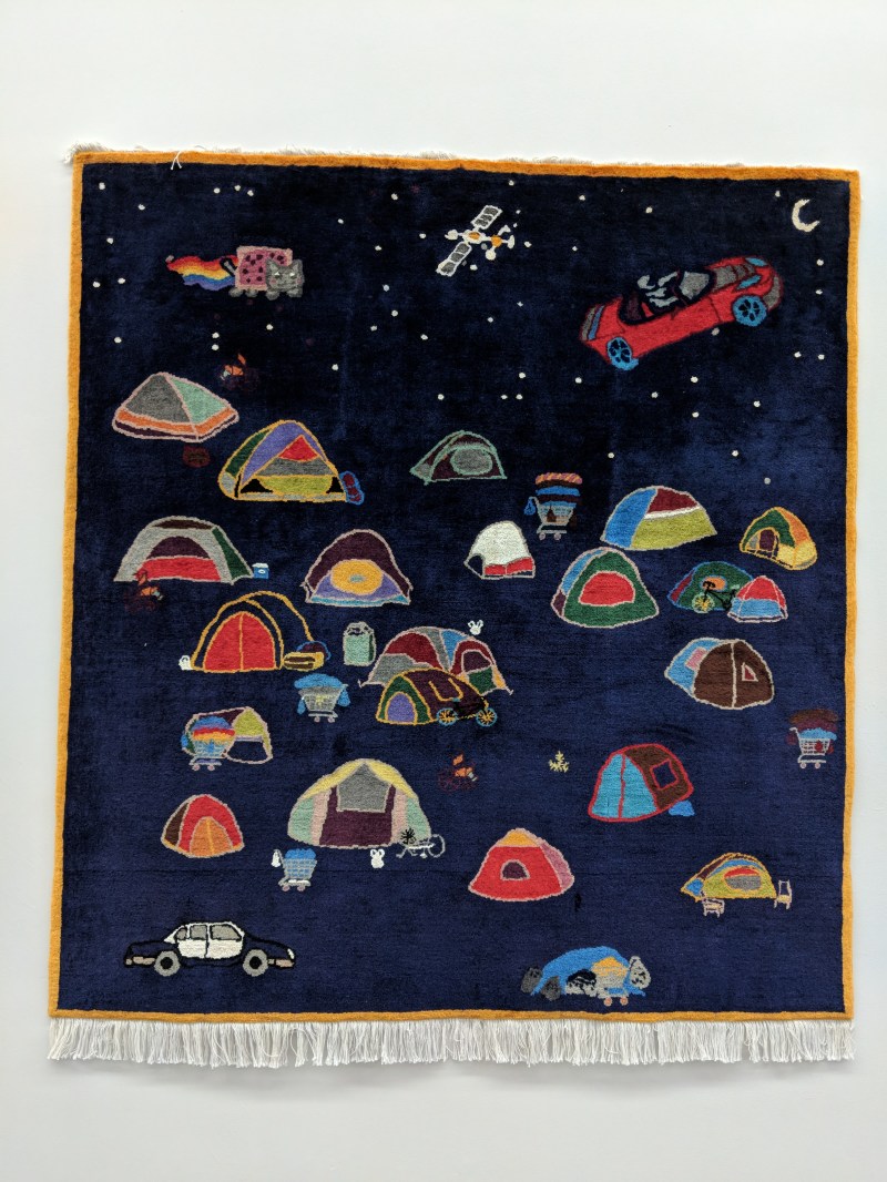 Lorsque Suzanne Husky revisite la tapisserie historique de La Dame à la Licorne pour représenter une scène de destruction de la forêt, elle manipule à son tour la stratégie de la sublimation (La Noble Pastorale). L’œuvre nous séduit, puis nous amène à réfléchir à la brutalité de la pensée dominante. Il en est de même avec les tapis Jérôme et Mars Bitches, qui pour l’un raconte l’histoire de Jérôme Laronze, un paysan abattu par un gendarme le 20 mai 2017 ; et pour l’autre traite de la violence des classes à San Francisco. Les œuvres de Suzanne Husky attestent ainsi de la conscience d’un rôle et d’une responsabilité en tant que citoyenne, en tant que qu’artiste, en tant que femme. L’artiste dénonce une banalisation de la dérive, une indifférence généralisée et une participation paresseuse et aveugle à un système mortifère. Sa pratique nous invite au sursaut et à la résistance. En investissant les champs ancestraux de l’art en pratiquant notamment la céramique et l’art tissé, l’artiste tend à fabriquer de nouveaux récits, de nouvelles images, de nouvelles pratiques visant à célébrer le pouvoir-du-dedans dont nous sommes les acteurs et les actrices.