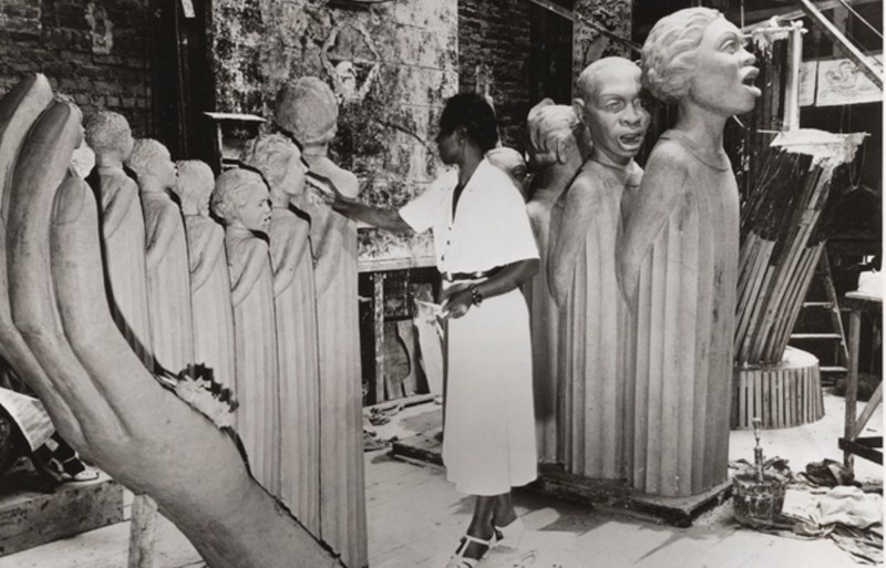 Augusta Savage (née Augusta Christine Fells) est née en 1892 près de Jacksonville en Floride. Enfant, elle réalise des petites sculptures en argile, elle modèle principalement des figures animales. Son père, pasteur méthodiste, lui interdit de prendre une voie artistique. Pourtant, encouragée par quelques professeurs, c’est la direction qu’Augusta Savage va rapidement prendre. Elle décide de partir à New York pour étudier et se former à la sculpture. En 1921, elle intègre la Cooper Union où elle travaille auprès du sculpteur George Brewster. En 1923, elle postule pour une résidence d’été en France. Son dossier est refusé parce qu’elle est une femme noire. Ce refus génère une colère qui va mener l’artiste à l’organisation de débats publics et de manifestation pour dénoncer l’injustice et le racisme. Un engagement militant envers les droits civiques auquel elle donne une autre forme de visibilité dans son travail de sculpture. Elle reçoit en effet une première commande publique pour la réalisation d’un buste de W.E.B. Dubois (sociologue, historien et militant pour les droits civiques) destiné à la bibliothèque de Harlem. L’œuvre connaît un vif succès qui engendre de nouvelles commandes : un buste de Marcus Garvey (militant), un autre de William Pickens Senior (auteur et journaliste). Progressivement, les visages des acteurs et des actrices de la voix noire sont mis à jour.