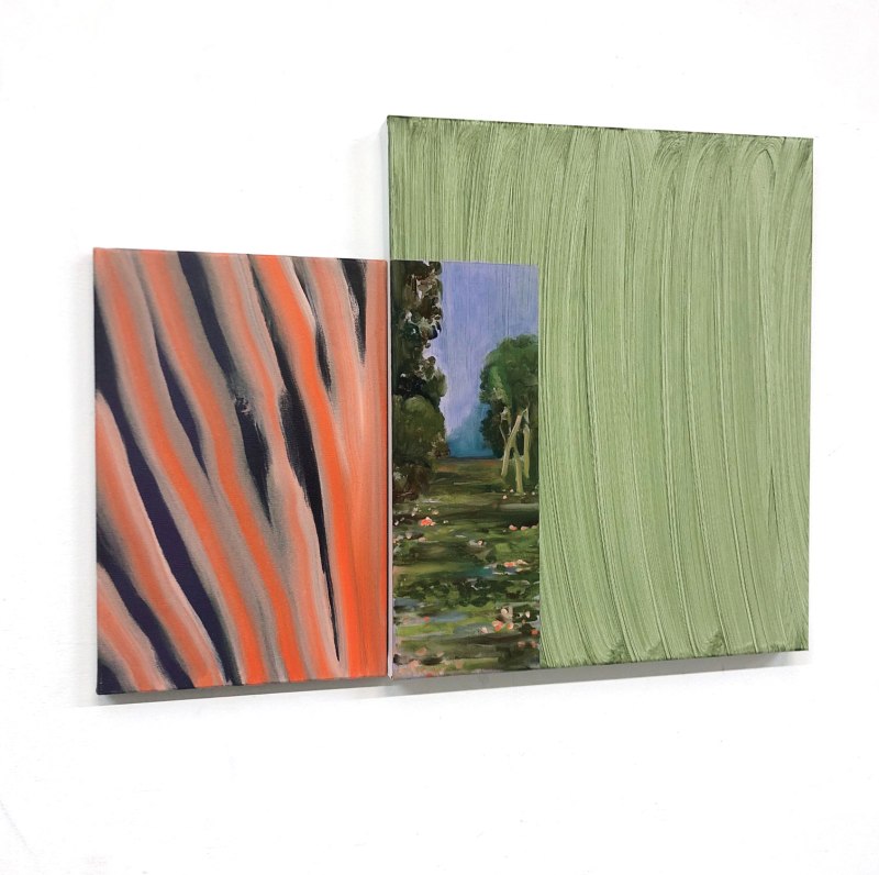 Au fil des œuvres, Coraline de Chiara construit un paysage transculturel au sein duquel elle articule une pluralité de figures, mythologiques et anonymes, de matériaux et de motifs. Un paysage, une nouvelle géographie dont la carte se déplie à l’infini. Un paysage d’images persistantes, de lucioles ranimées. Les œuvres, pensées comme des collages, s’associent et engendrent de nouvelles ramifications qui résonnent alors comme la promesse de nouveaux territoires à fouiller et à expérimenter. Parallèlement, en analysant l’histoire de la peinture, son passé et son devenir, ses antagonismes, son exécution, elle arpente le territoire de la peinture. D’Ellsworth Kelly à Malcolm Morley en passant par Brice Marden, Pierre-Henri de Valenciennes et Jean-Baptiste Corot, ses références et ses inspirations engendrent un décloisonnement. À l’écoute des différents débats et des agitations souvent superficielles, elle tend à s’extraire des carcans picturaux pour mieux les fondre et les confondre.