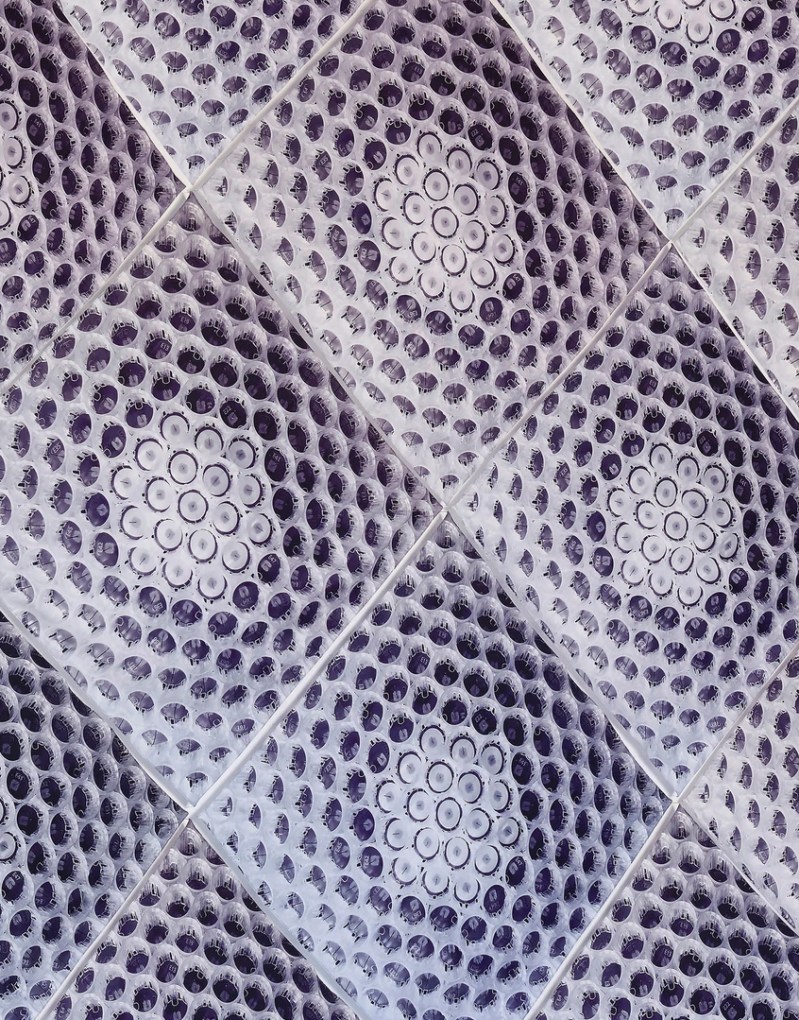 Floryan Varennes articule ainsi des éléments de parures, des accessoires dont les fonctions sexuelles, sacrées ou médicales sont déterritorialisées pour donner à voir des corps altérés. En ce sens, il s’appuie sur les objets issus du soin comme les orthèses visant à la fois à stabiliser un membre blessé et à compenser une fonction absente ou déficitaire. Les matériaux engendrent une transformation et un soin que l’artiste souhaite magnifier. La tenture intitulée Archa Insula réunit les capuchons de seringues d’insuline utilisée pendant une année. La seringue est l’objet d’un rituel quotidien pour la personne atteinte du diabète. Floryan Varennes les a assemblés pour créer un motif, puis photographiés et transposés sur des foulards en soie. Les aiguilles cernées de plastique sont déplacées vers un motif auréolé, multipliable à l’infini, faisant échos à des cellules organiques, un blason ou un bouclier. Le traitement, ces outils et les gestes qu’il implique, fait rituel. L’artiste parle aussi d’une « torture nécessaire, automutilatrice et régénérante » visant au soin.[1] La répétition des foulards, des motifs et des piqûres, fait écho à la démultiplication cellulaire et à la transmutation de la maladie.