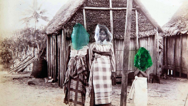 Gabrielle Manglou développe une œuvre inspirée par le paysage, la représentation humaine et animale. Avec une volonté de réorganiser le réel, elle dote à la faune comme à la flore des formes stylisées et des couleurs acidulées. Sur papier comme dans l’espace, sur un mur comme sur un écran, elle pratique l’art du collage en hybridant le dessin, la découpe de formes géométriques colorées, l’aquarelle, la photographie, le document d’archives et l’objet domestique. Ainsi, il n’est pas improbable de rencontrer des êtres coiffés de chapeaux pointus, un singe portant un masque coloré, une montagne noire reposant sur un amas de câbles, une fleur en pleurs ou encore des chaises surmontées de volcans en éruption de feux d’artifice. Un élément à la fois étrange et fascinant traverse son œuvre : l’œil. Seul, par pair ou en groupe, il plane et surveille un monde vacillant, rieur et méfiant. Réduits à leurs silhouettes colorées, les personnages ne sont pas identifiables, les visages se fondent à la couleur. Seule l’addition des yeux, ronds ou en amendes, leur donne un air halluciné et absurde. Les humains sont alors perçus comme des êtres fantomatiques et clownesques. En alliant les imageries issues de différents territoires comme l’ethnographie, le cirque, le théâtre, la nature (minérale, organique et animale), Gabrielle Manglou fait jaillir un univers où son imaginaire personnel se glisse dans le réel tel qu’il est présenté dans les livres. En injectant ses formes et ses couleurs aux images, l’artiste s’approprie un récit, celui d’un discours de vérité qu’elle refuse et détourne. Derrière les décors édulcorés, les rondes, les parades et les cotillons, palpite une violence sourde liée à l’Histoire que l’artiste ne cesse de fouiller et retravailler les images.