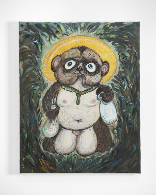 Vidya Gastaldon – Tanuki (2020) – acrylique sur toile – 41 x 33 cm. Courtesy : Vidya Gastaldon & Wilde Gallery (Geneva)