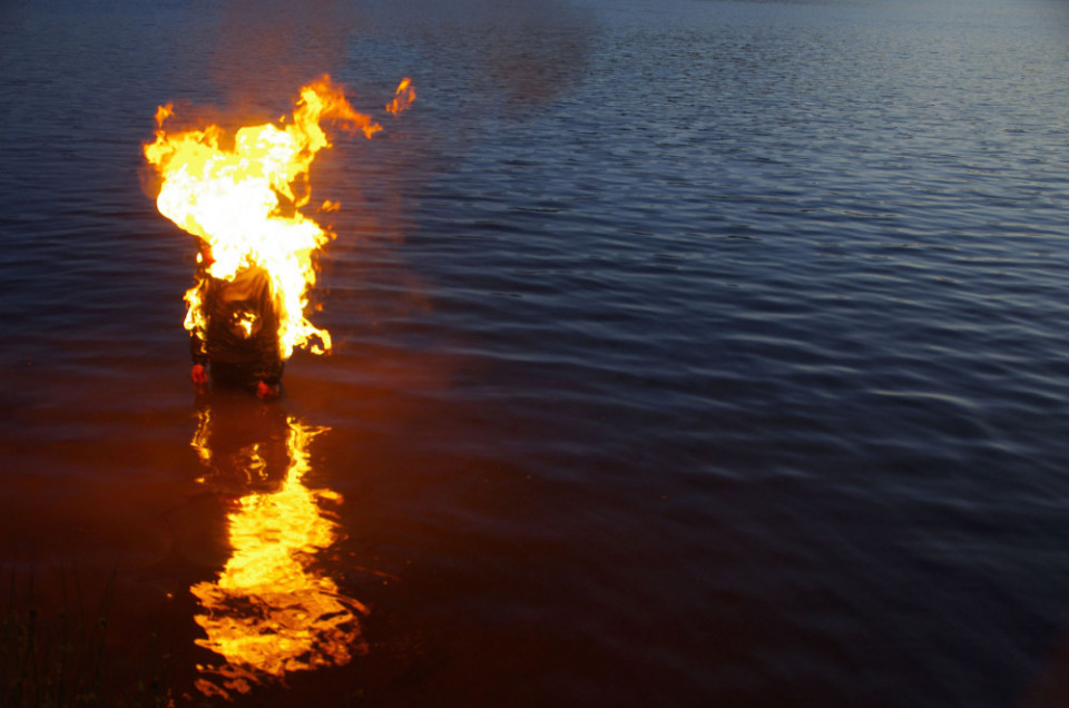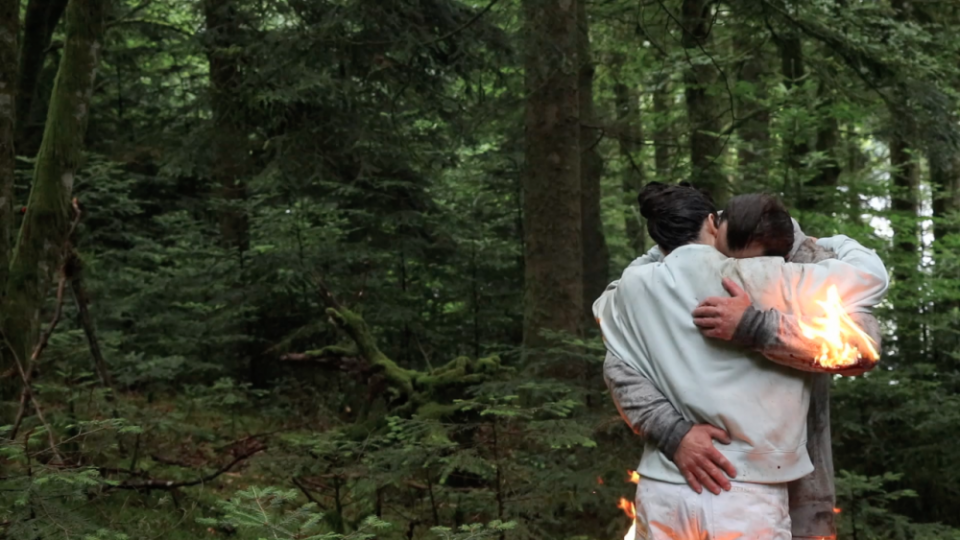 Des situations jaillissent. Comme sorties de nos rêves. Elles ne sont pas toujours confortables. Les corps sont parfois mis à l’épreuve à l’intérieur d’un espace-temps qui nous semble infini et où s’entrecroisent l’étrange et l’enchantement. Chaque rencontre est insolite : un homme en costume marche dans l’eau gelée d’un lac ; un chasseur joue du piano dans un bois ; une femme danse le flamenco en bravant la puissance du vent ; une autre, plus âgée, est vêtue d’un manteau de fourrure, les yeux plissés, elle lutte aussi contre les rafales d’un vent froid ; une meute de personnes augmentées de déambulateurs avance dans une forêt enneigée ; un cheval apparait entre les arbres, il est immobile et silencieux ; des moutons voguent, pattes liées à une barge ; des humain.es, seul.es ou en couple, apparaissent, immobiles et silencieux.ses dans la forêt, leurs vêtements brulent par endroit ; une femme chuchote à l’oreille d’un cheval. Les corps, humains et non humains, y sont vulnérables, mystiques, libres et perceptifs. Chaque situation semble provenir ou s’échapper de nos imaginaires les plus secrets. Julie Chaffort met en scène et en œuvre une poésie invisible ou à peine perceptible. Elle nous immerge dans la vie, les vies entremêlées d’un écosystème en mouvement perpétuel et qui atteste de « la jouissance d’être vivants avec d’autres ».[4]