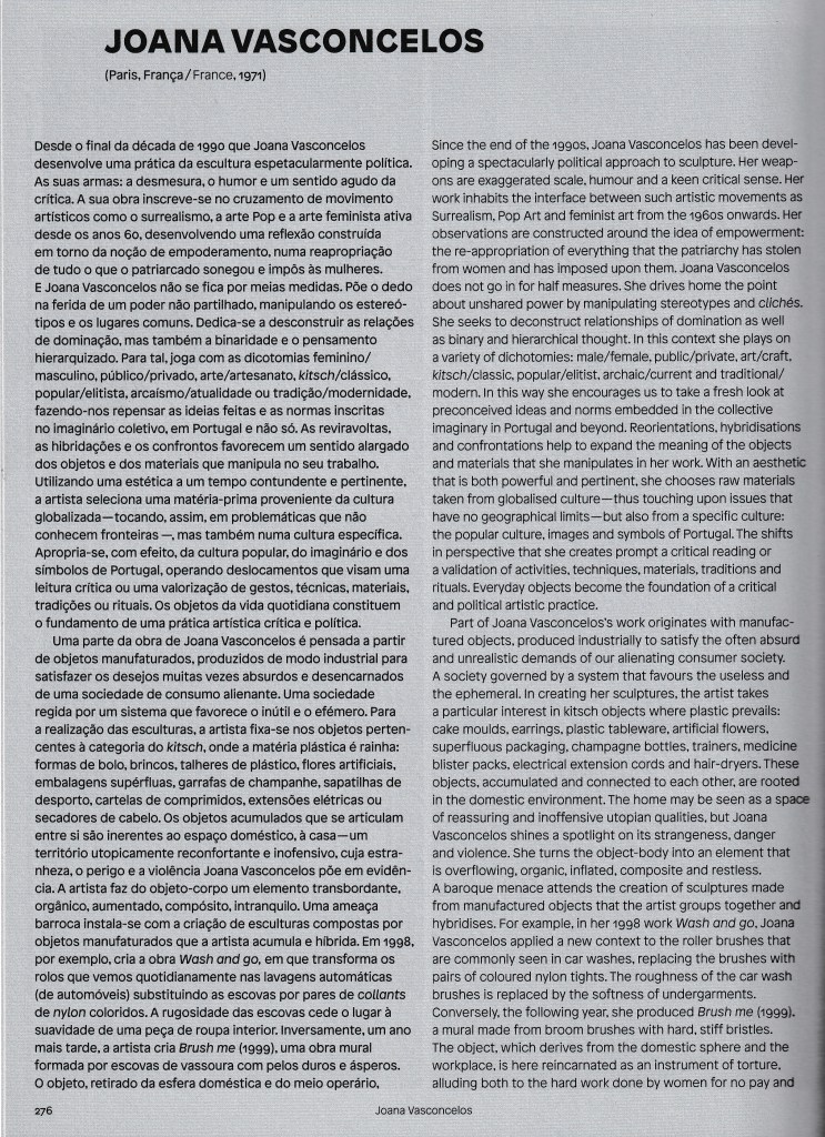 JUNCOSA, Enrique; SARTWELL, Crispin, Joana Vasconcelos: Material World. Thames & Hudson, Londres, 2015.