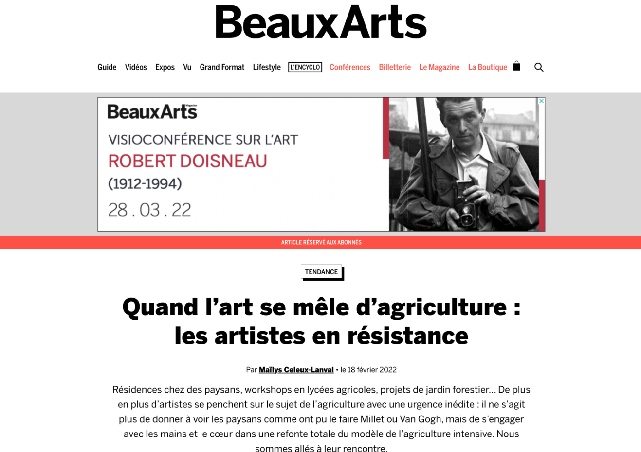 - BEAUX-ARTS MAGAZINE : https://www.beauxarts.com/grand-format/quand-lart-se-mele-dagriculture-les-artistes-en-resistance/