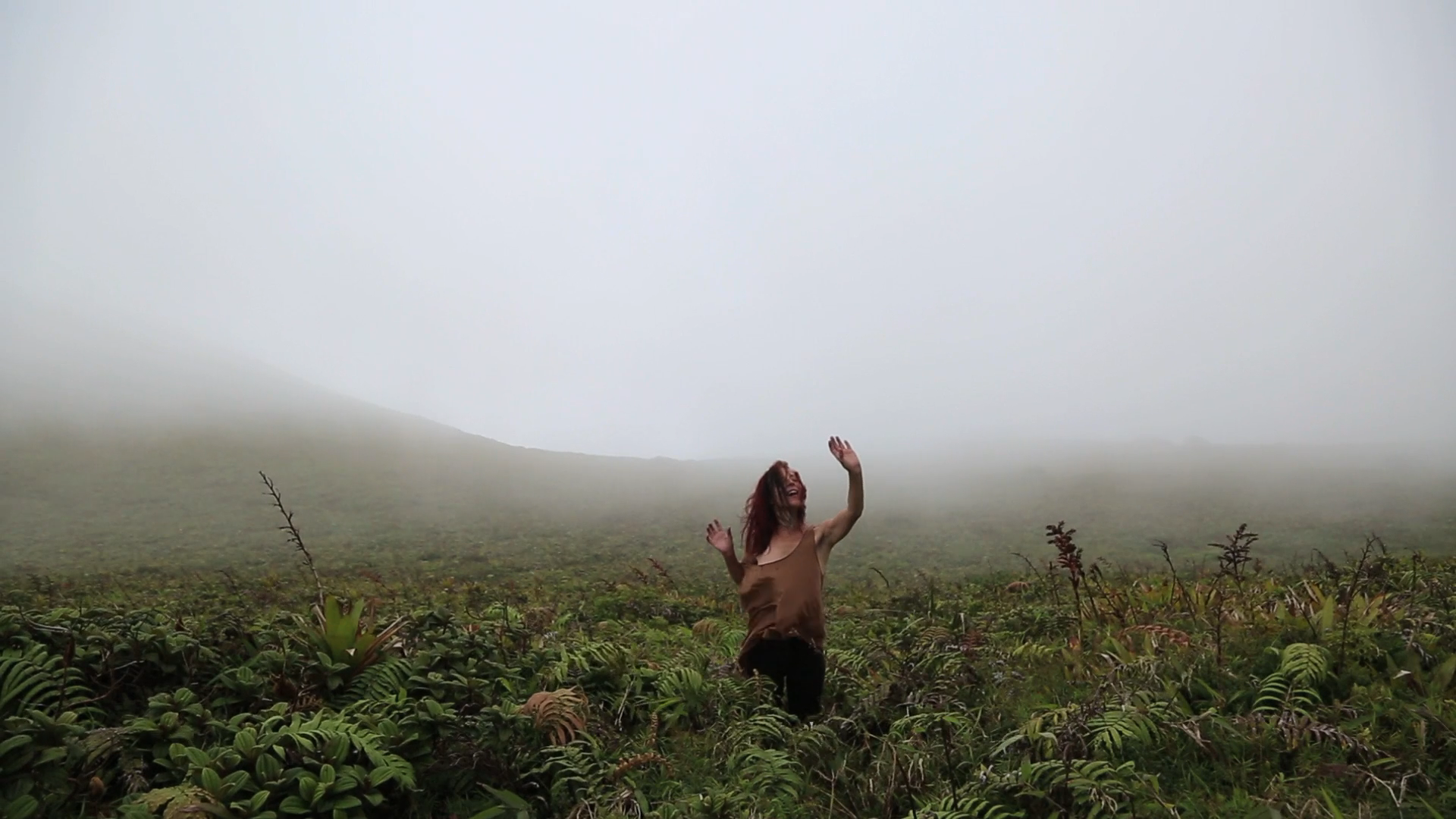 Ses yeux sont fermés. Son corps est concentré. Il ressent. Lentement. A la fois vulnérable et enraciné, il se laisse affecter par le milieu dans lequel il s’inscrit en conscience. Il danse. Lentement. Il perd son identité humaine. L’être danse avec le vent, avec la végétation. Il respire le lieu pour être accueilli. Il est en alliance. Il avale la brume. Il entre progressivement en connexion avec les éléments. Le râle profond des roches souterraines se transforme peu à peu en un cri puissant. Il dépasse l’échelle humaine. Il est le cri de Gaia. Une immensité qui se propage par-delà le temps et la géographie. Il déclama un chant chtonien. Il est le cri du morne lui-même, ou bien celui du sol, du ciel, de l’océan, des oiseaux ou de la brume. Des esprits du lieu.