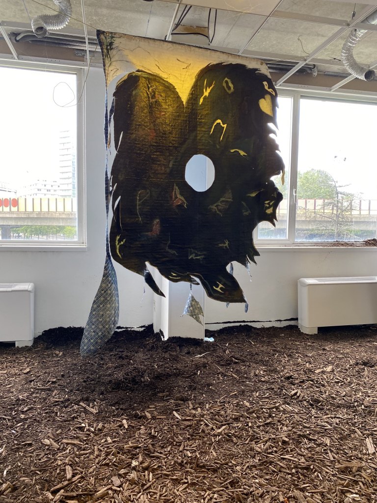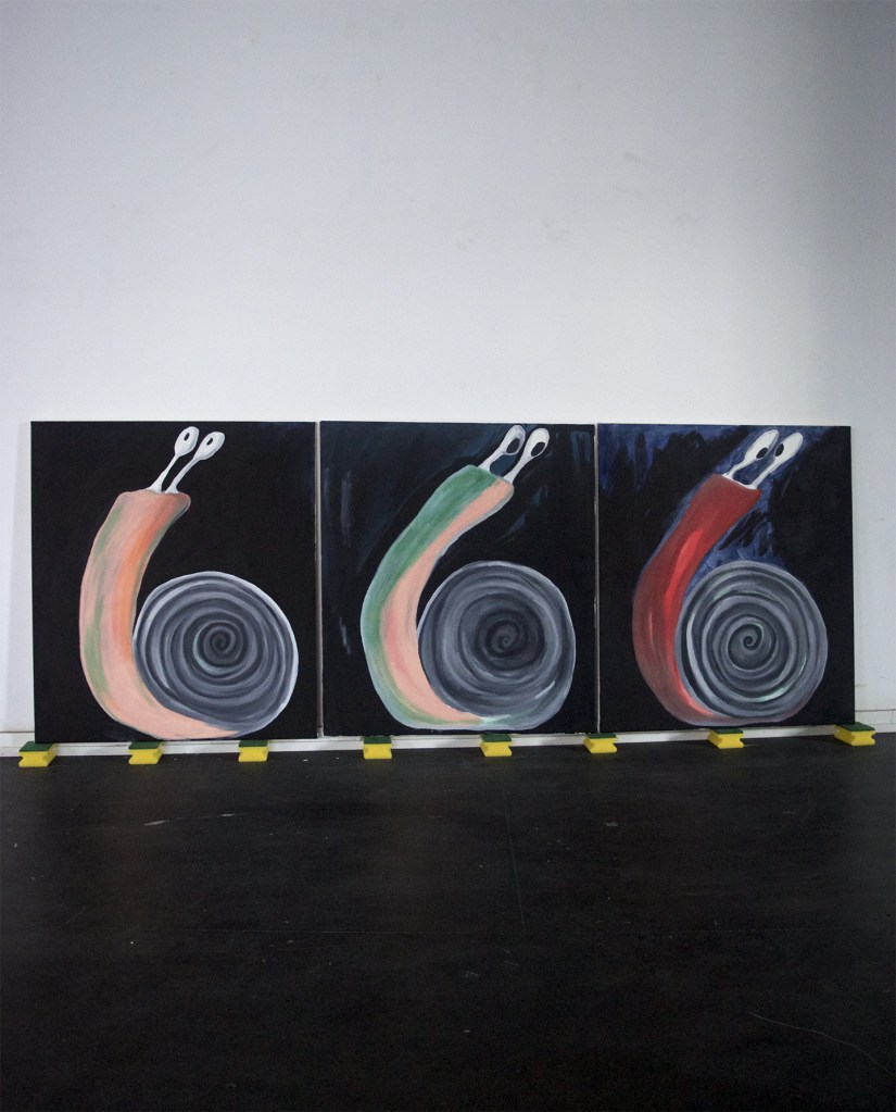 L’artiste compose avec ses origines et les réalités (économiques, culturelles et sociales) de son quotidien. Au fil des œuvres, la dimension magique et spirituelle s’affirme. De sa part kurde, elle injecte la pensée animiste, les pratiques sorcières, le nomadisme et la pensée ouverte des Alevis (la branche hippie de l’Islam). Les signes, les matières et les couleurs sont chargés d’un pouvoir troublant. L’artiste fabrique une langue volontairement déstabilisante et résolument politique. Une langue en mouvement dont chaque élément peut adopter un autre statut, une autre position, une pluralité de sens. Une langue transitoire, crade, qui se fout bien de séduire ou de dégoûter. Une langue qui prend son temps et qui déborde spatialement pour chambouler notre relation au vivant. Une langue adressée aux visibles comme aux invisibles, aux terrestres dans leur ensemble – sans hiérarchie, sans privilège. Hatice Pınarbaşı, dont l’alter ego est l’escargot (une créature discrète et superpuissante), bave et trace lentement sa grammaire précaire, consciemment analphabète.
