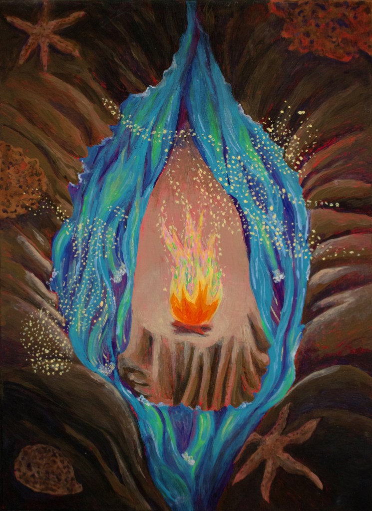 Starhawk speaks of immanence or the Goddess to define inner power « that connects, nurtures, heals and creates. » A power like a vital drive that invites one to connect, feel and experience the living as a whole. A tangible living, but also an invisible and more abstract living, that of spirits and elusive forces that, if we invoked them and listened to them, we would be able to perceive. The power of the inside lies in this capacity, individual and collective, to feel, to recognize, to embrace or to protect.