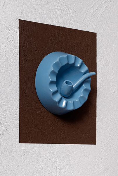 Impossible de ne pas penser à la Trahison des images de René Magritte. Ceci n’est pas une pipe. Le titre nous informe de ce que nous ne voyons pas. L’artiste, par des jeux de mots et d’images, nous invite à penser le sujet et le statut même de l’œuvre. En 2018, il réalise Trahison, un hommage pleinement assumé à l’artiste belge. Un rectangle de peinture brune est appliqué directement au mur. La plage de couleur est à la fois le lieu de la toile et la représentation du socle. Par-dessus, il assemble deux tirages en résine bleu pâle, celui d’un cendrier et celui d’une pipe. L’aura de Magritte est présente dans sa pratique à travers l’ambiguïté qu’il instille, mais aussi à travers les titres de ses œuvres qui fonctionnent souvent comme des jeux de mots (tautologiques, poétiques, humoristiques), ils appellent à des références spécifiques. L’ensemble fonctionne comme un jeu dont Etienne Bossut écrit les règles. L’artiste dit : « En repensant à notre discussion au sujet de Magritte, je crois qu’avec mes moulages, je suis un artistesur réaliste. »[8] Michel Foucault, à propos de la seconde version de l’œuvre de Magritte, écrit : « La seconde multiplie visiblement les incertitudes volontaires. »[9] C’est sur cette notion d’incertitude volontaire que s’est construite l’œuvre d’Etienne Bossut. Que voit-on exactement ? L’œuvre est à la fois une sculpture (un volume), une photographie (une surface sensible) et une peinture (traitement de la matière sur une surface) réalisée à partir d’un objet produit de manière industrielle. « Trahison de l’objet transformé en image, trahison de l’image qui n’est qu’un signe de quelque chose qui n’est pas là, et encore trahison du volume et de sa masse. »[10] Il ne s’agit pas d’un fauteuil a proprement dit, mais plutôt de son image, résultat d’une duplication, d’un moulage. À propos de la forme négative de l’univers, Tristan Garcia développe sur le moulage d’un objet. Il écrit : « J’ai donc confondu la forme et l’absence, comme un homme qui, découvrant le moule de la sculpture d’un corps de femme, confondrait l’empreinte avec l’absence même de la femme, le creux ménagé dans l’argile et la disparition du modèle. »[11] La duplication de l’objet implique sa disparition, son retrait. L’écrivain et philosophe poursuit son raisonnement : « Le moule reste en effet le même que le corps soit présent ou absent, il indique une forme inchangée. Le moule argileux n’est pas l’absence du corps de la femme, mais son négatif : ce négatif a existé en même temps que son positif, lorsque le moulage a eu lieu, et il a subsisté lorsque le corps est sorti de sa gangue. L’absence n’est donc pas un objet, mais un évènement : ce n’est pas la forme du moule, mais le fait d’avoir retiré le corps du moule. Le moule est la forme et le négatif du corps, sous l’aspect d’un objet matériel ; l’absence est l’évènement du retrait de la chose hors de sa forme, de son négatif, qui persiste sous une forme objective (comme persistent une trace, une empreinte, un parfum, un souvenir, une image…). »