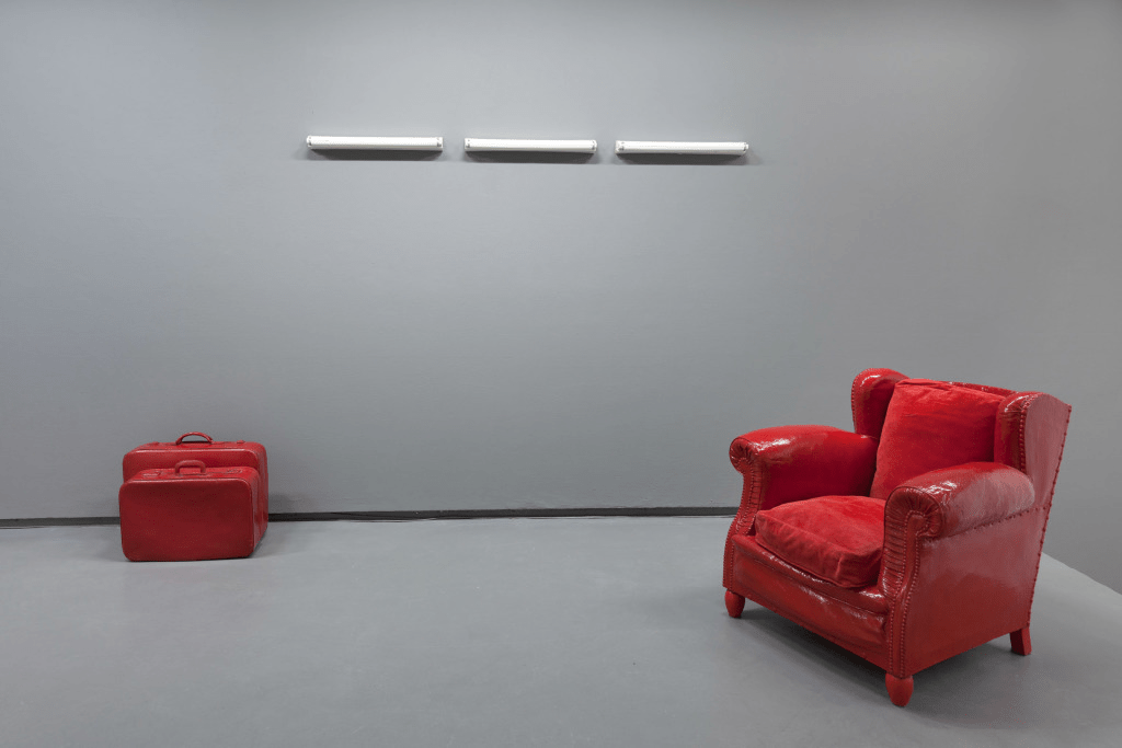 Comme une évidence, Etienne Bossut s’empare des objets pour en troubler la matérialité. En 1976, il décide de réaliser un moulage de son fauteuil en cuir. Il met au point une technique d’empreinte directe, qu’il applique maintenant depuis plus de cinquante ans. Le matériau retenu est la résine synthétique teintée dans la masse. Mon Fauteuil (1976) est littéralement le tirage inédit d’un fauteuil ancien, usé, affaissé. Le tirage – l’œuvre – conserve les marques du temps, les imperfections, la mémoire des formes creusées par les corps. Ici aucune illusion, aucun mensonge, mais peut-être la volonté d’atteindre « l’individualité concrète » dont parle Umberto Eco. Une individualité située dans une fixation temporelle de l’objet original, dans sa matérialité et sa couleur. Les tirages sont unis par un matériau unique et une gamme de couleurs restreinte. Mon fauteuil est fait de résine de polyester teinté en rouge vif aux effets brillants. L’œuvre est clinquante, elle tape-à-l’œil. Le tirage agit comme un miroir, une conversion pop et personnelle de l’objet reproduit.