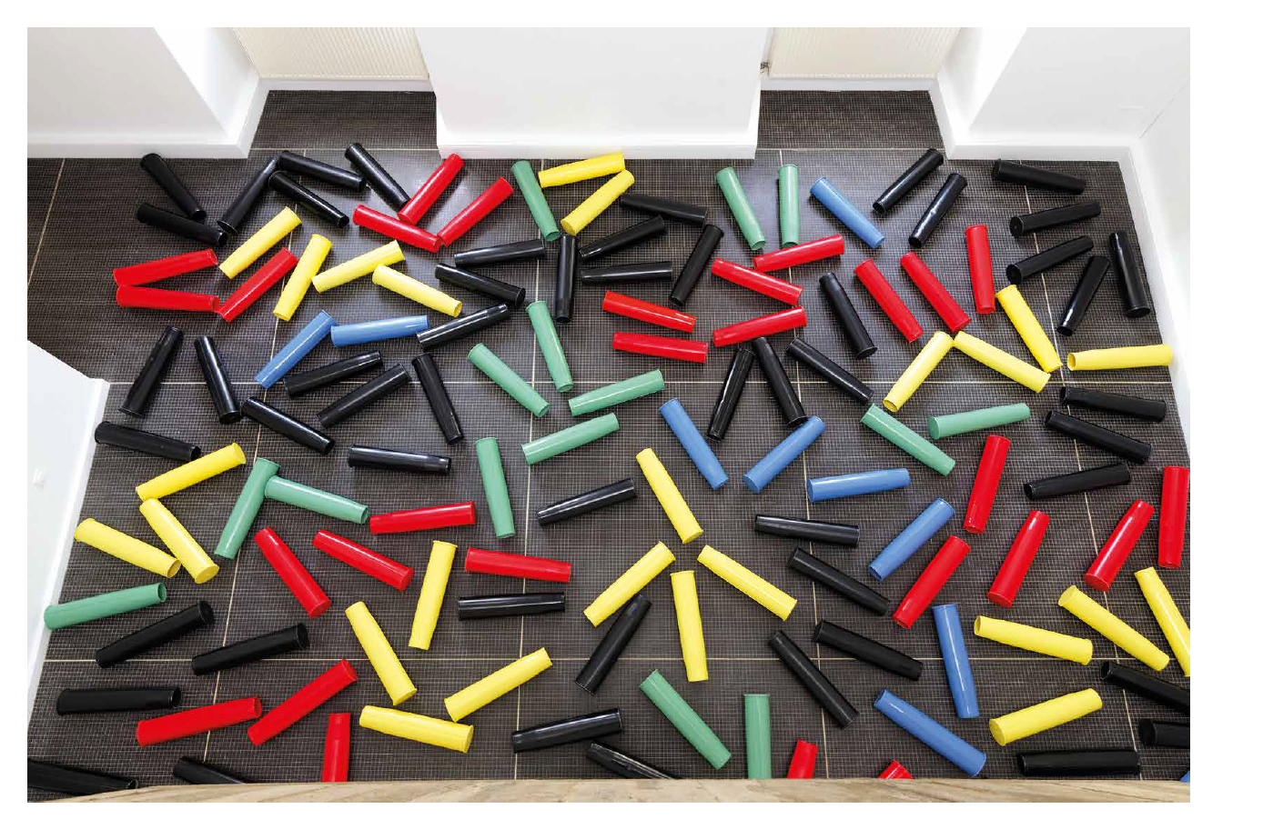 Si la plupart des œuvres forment un autoportrait (en isolant et en singularisant les tirages), deux œuvres fonctionnent différemment. En effet, en observant Ma cabane (1996-1997) et Dans quelle étagère ? (2006), nous comprenons une tentative de réunion de tirages différents afin qu’ils ne forment plus d’une œuvre, un corps à part entière. Ma Cabane réunit vingt-sept tirages d’objets. Autour d’une cabane sont entreposés des chaises, des bidons, des skis, un canoë, des toiles ou encore un frigo. Tous les moulages sont réalisés en résine rouge coquelicot, ils forment un tout, un corps à part entière. Un corps de souvenirs, d’expériences, de travail et de loisir. L’œuvre apparaît comme une synthèse, un vortex à la fois esthétique, formel, émotionnel et mémoriel. De même, Dans quelle étagère ? résulte d’une superposition et d’un arrangement de plusieurs tirages : quatre tables basses en résine blanche, des poids de petites et grandes tailles en résine noire (Petits mensonges en série – 1981), une version miniature de la carcasse de la New Beatle en résine bleu ciel (Toy – 1998), sept petites bassines de couleurs différentes et empilées (Pile – 2006), un vase en résine noire surmonte enfin l’ensemble (Fait à la main, 2007). Dans quelle étagère ? peut être interprétée comme une rétrospective d’œuvres réalisées entre 1981 à 2009. Chacune d’entre elles recèle la « haute température émotive » énoncée par Umberto Eco plus avant. Les deux œuvres réunissent et assemblent des tirages extraits de différentes séries, elles forment des synthèses à la fois de ses recherches plastiques, ainsi que de sa propre histoire. Elles participent d’un mouvement dans le processus plastique d’Etienne Bossut qui se refuse la fixité des œuvres. En ce sens, il propose de nouvelles configurations et de nouveaux états (par le changement d’échelle et de couleur, par la multiplication). Une fois de plus, le jeu prend une part importante dans le display et l’investissement de l’espace, intérieur comme extérieur. Cette mobilité et cette volonté de transformation contribuent au caractère vivant et impermanent de son œuvre. Un caractère qu’une fois de plus nous ne pouvons pas déterminer d’une manière ferme et définitive puisque nous allons maintenant nous pencher sur la valeur d’archive de ses œuvres.