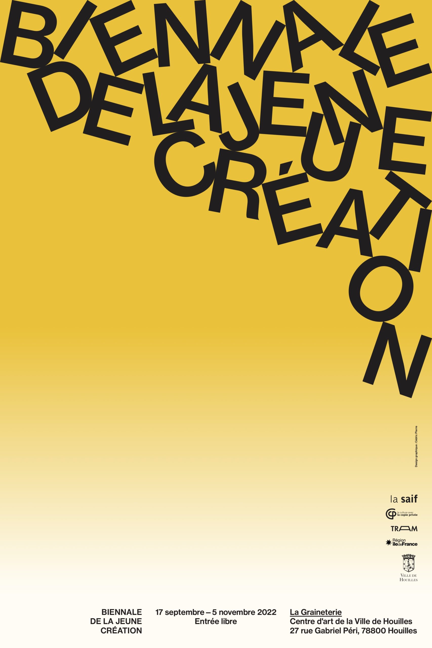 L’édition 2022 de la Biennale de la jeune création se déroulera à La Graineterie, centre d’art de la ville de Houilles, du 17 septembre au 5 novembre 2022.