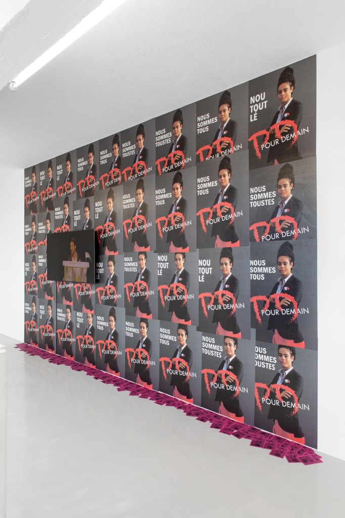 L’exposition dialogue MAKE A SPACE FOR MY BODY allie les oeuvres d’Esther Ferrer (née en 1937 à San Sebastian, Espagne – vit et travaille à Paris) et Brandon Gercara (né.e en 1996, vit et travaille à Saint Benoît, La Réunion). Les deux artistes appartiennent à des générations et des réalités différentes. Ielles partagent le refus du “spectacle de nos exclusions” (Virginie Despentes). De corps relégués aux fossés des normes parce qu’ils sont pensés comme étant différents par les tenant.es de ce carcan occidental, hétéropatriarcal et néolibéral. Esther Ferrer et Brandon Gercara manifestent leur refus avec radicalité, ferveur et engagement. Ielles ont fait de leurs existences respectives des lieux politiques où les corps s’avancent, déclament, réclament, crient, dansent, chantent, dénoncent, hurlent, miment, dévisagent. Des corps qui se déplacent, nous déplacent et déplacent ces normes, ces assignations et ces oppressions qui nous tuent.
