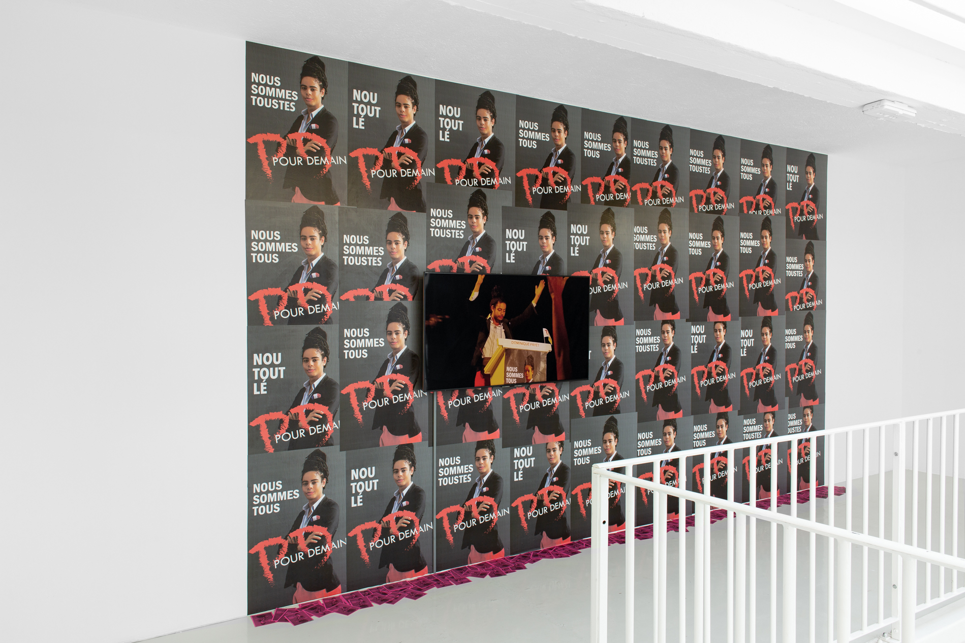 L’exposition dialogue MAKE A SPACE FOR MY BODY allie les oeuvres d’Esther Ferrer (née en 1937 à San Sebastian, Espagne – vit et travaille à Paris) et Brandon Gercara (né.e en 1996, vit et travaille à Saint Benoît, La Réunion). Les deux artistes appartiennent à des générations et des réalités différentes. Ielles partagent le refus du “spectacle de nos exclusions” (Virginie Despentes). De corps relégués aux fossés des normes parce qu’ils sont pensés comme étant différents par les tenant.es de ce carcan occidental, hétéropatriarcal et néolibéral. Esther Ferrer et Brandon Gercara manifestent leur refus avec radicalité, ferveur et engagement. Ielles ont fait de leurs existences respectives des lieux politiques où les corps s’avancent, déclament, réclament, crient, dansent, chantent, dénoncent, hurlent, miment, dévisagent. Des corps qui se déplacent, nous déplacent et déplacent ces normes, ces assignations et ces oppressions qui nous tuent.